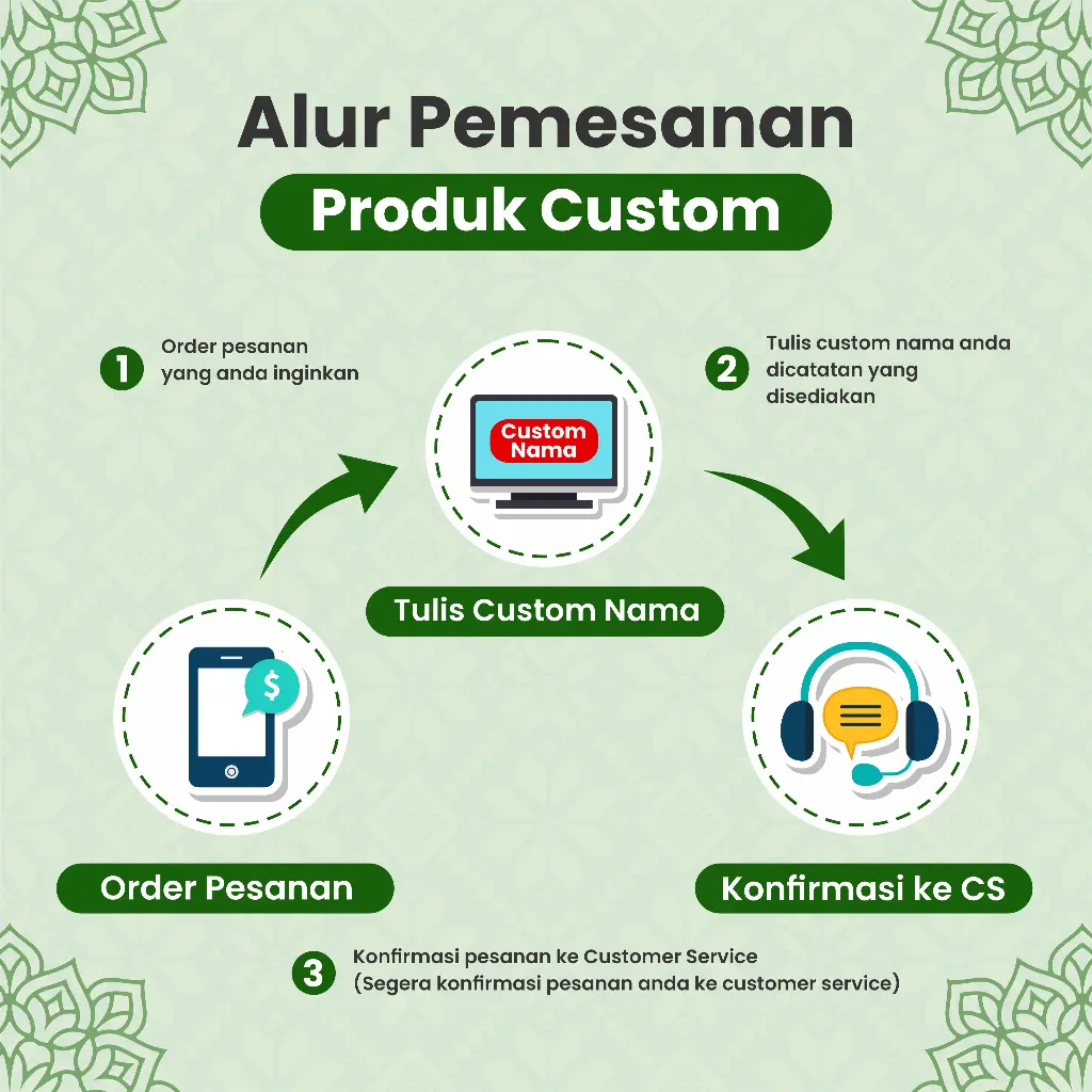 2. Untuk nama yang akan tercantum di cover Al Quran bisa lampirkan dicatatan atau bisa juga langsung konfirmasi di pesan chat.