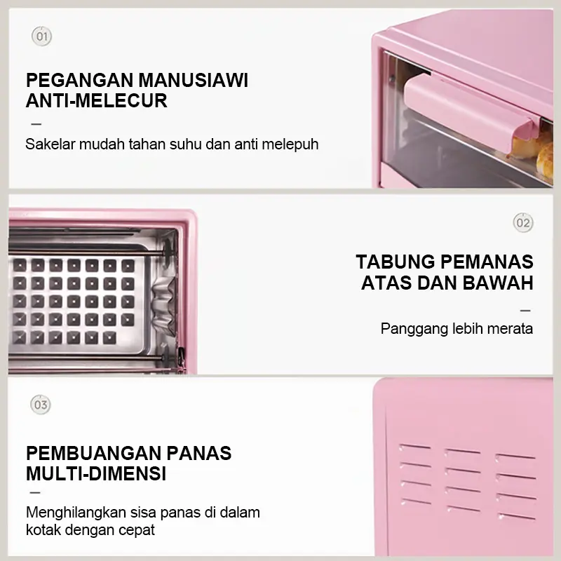·Pemanas atas dan bawah, memberikan kontrol yang lebih baik dalam memasak.