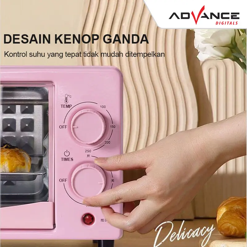 Advance Oven Listrik V-120 Kapasitas 12L Pemanas Atas Bawah Stainless Steel Low Watt 400W Garansi 1 Tahun Timer Kontrol Suhu Hingga 250C