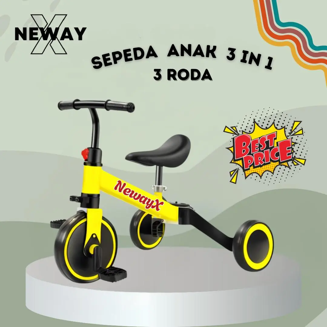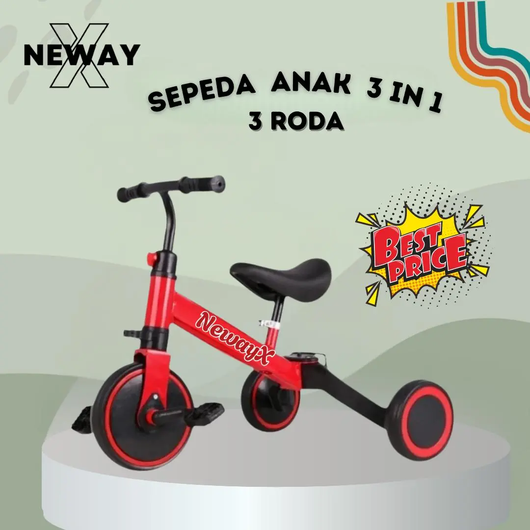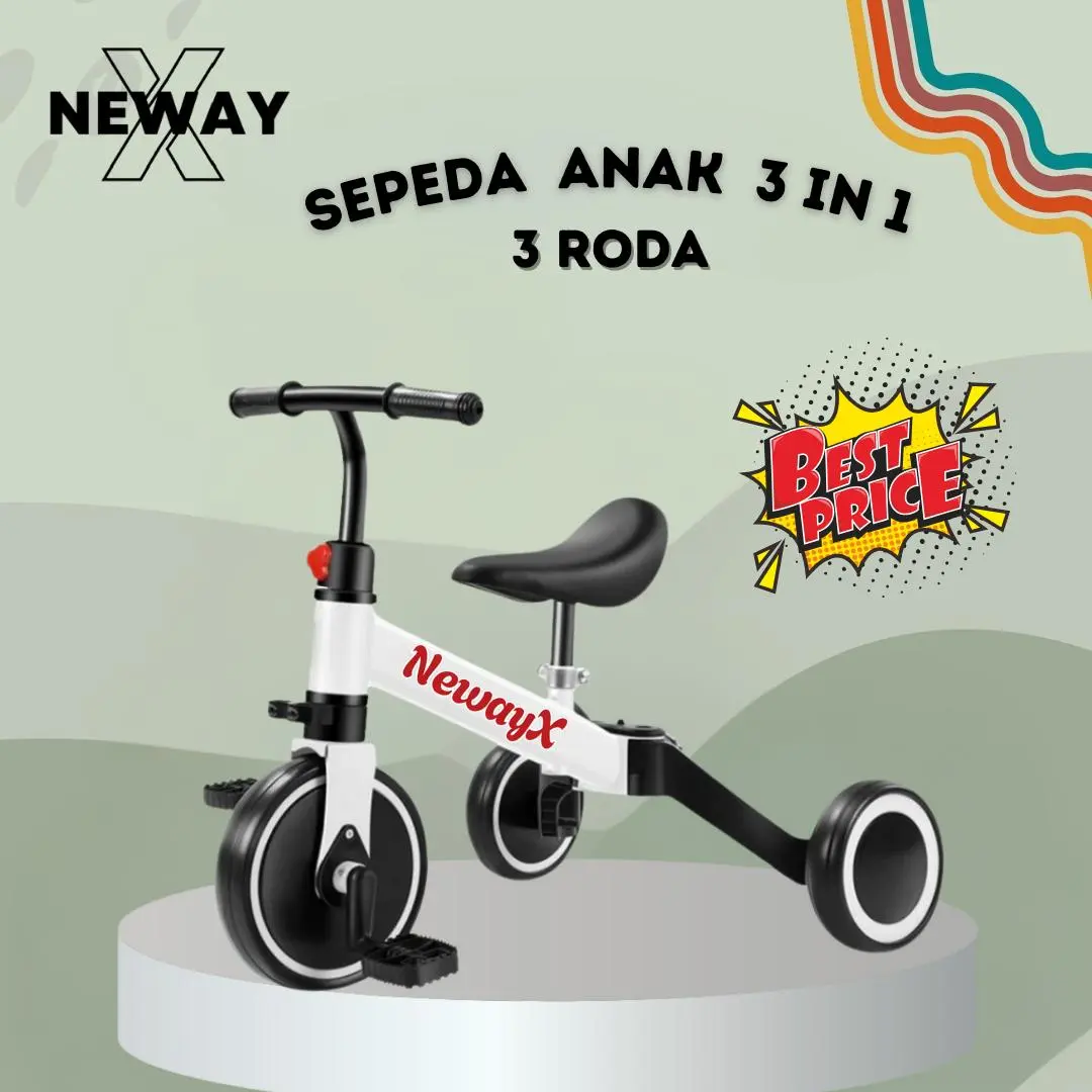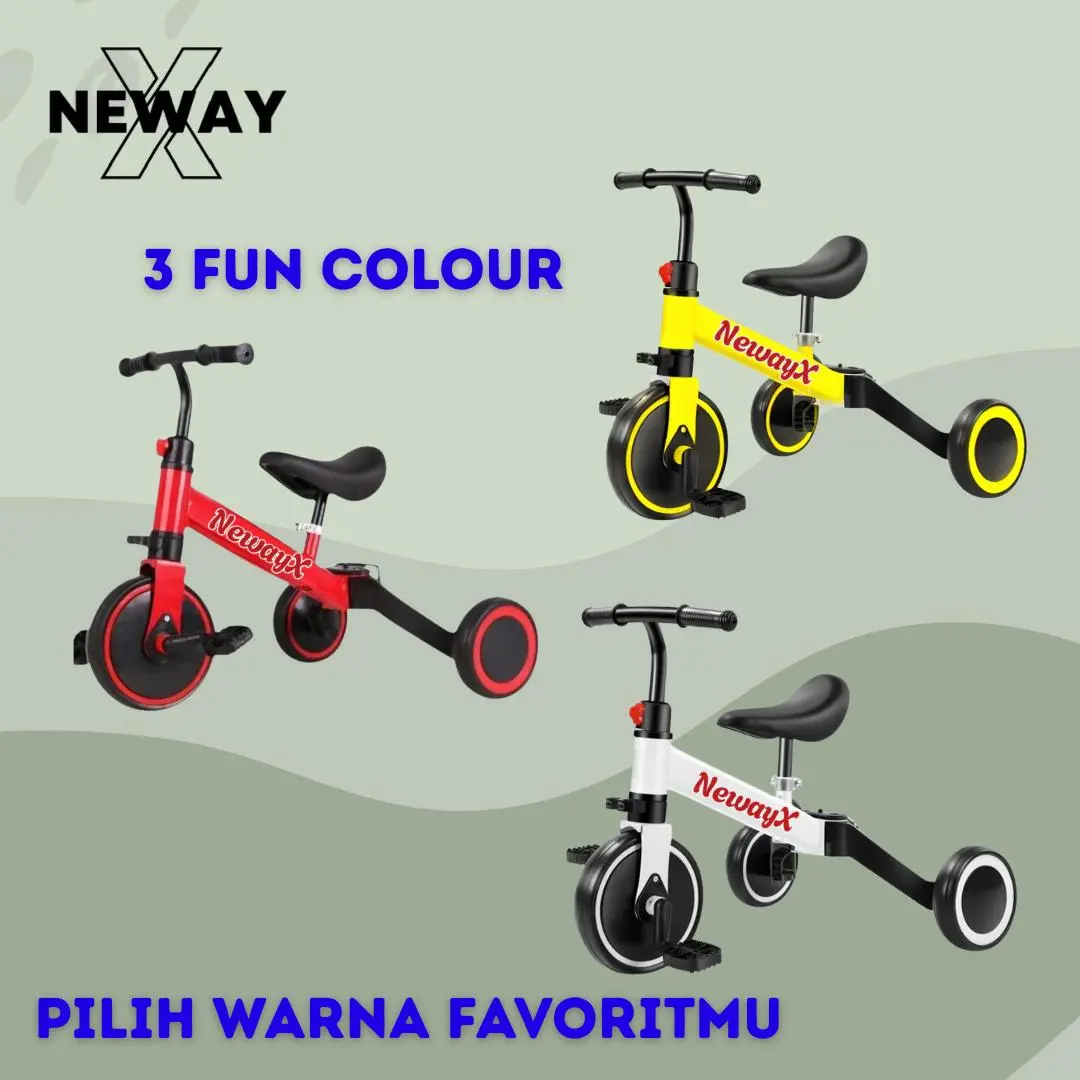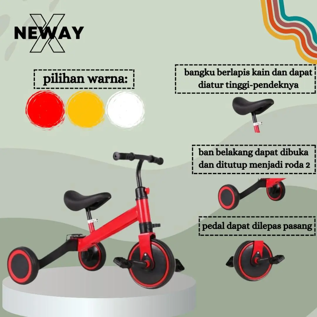 > Sepeda dengan 3 roda; bisa dijadikan 2 roda atau balance bike tanpa pedal