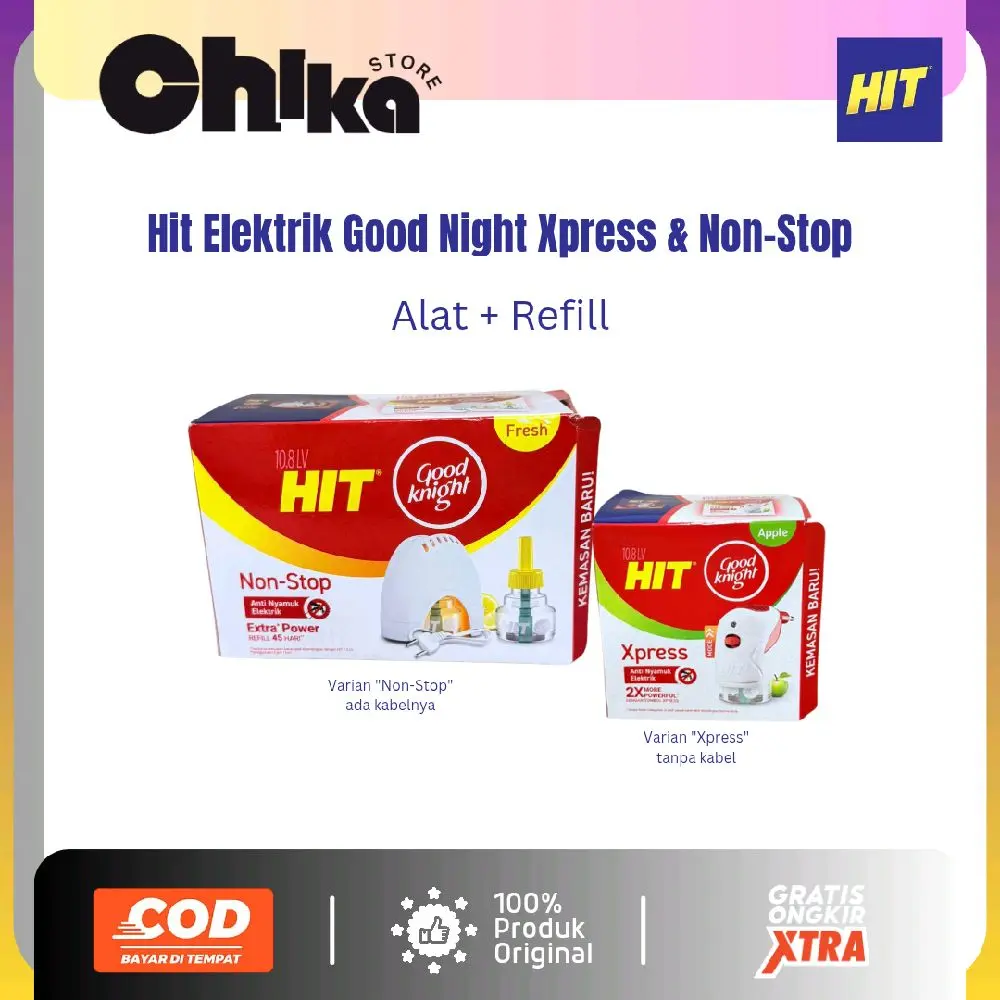 Hit Elektrik Good Night Non-stop / Xpress One Set (Alat + Refill) Obat Nyamuk Elektrik Tanpa Asap