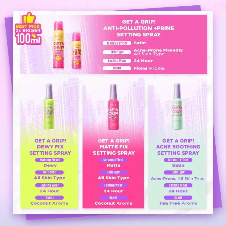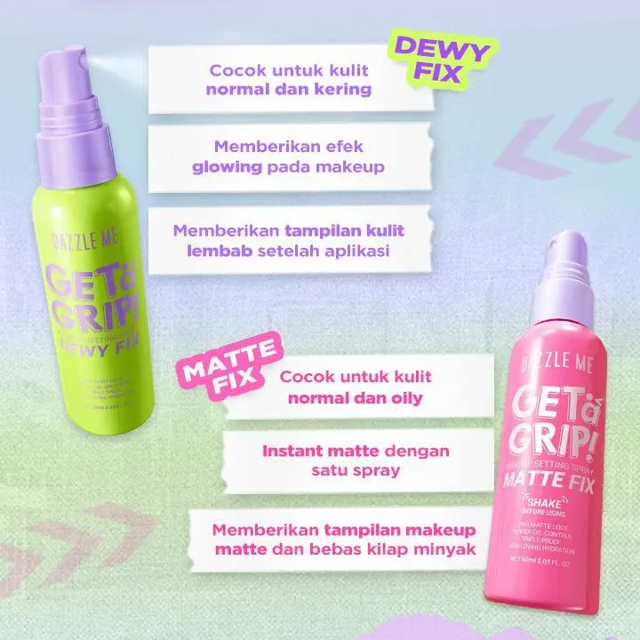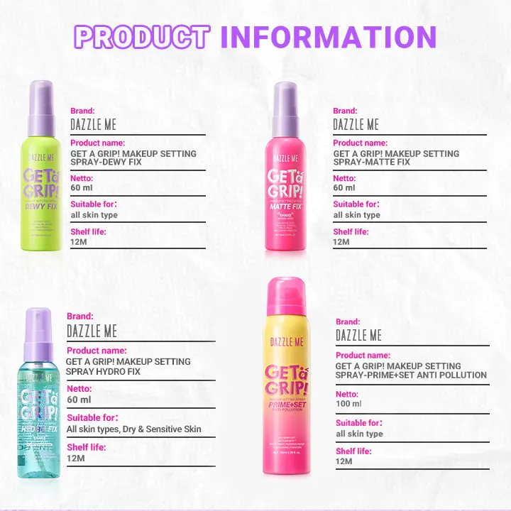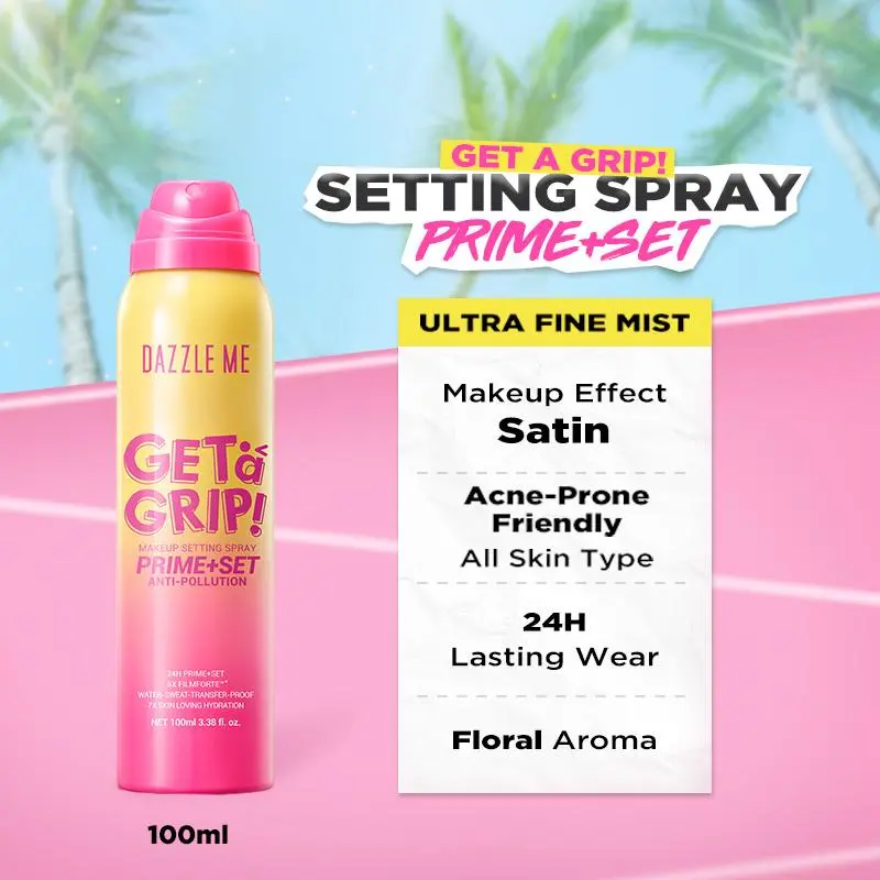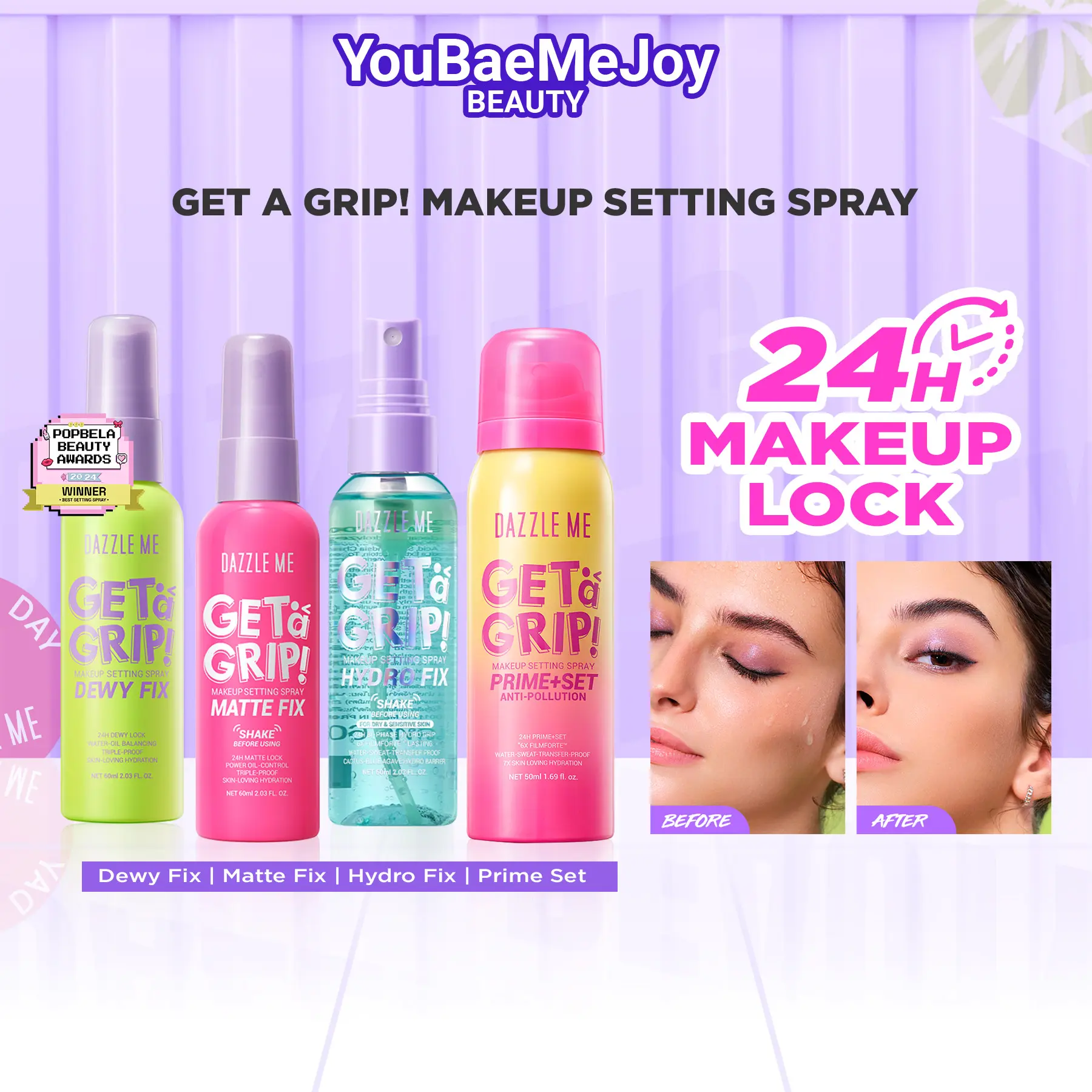 DAZZLE ME Get a Grip! Makeup Setting Spray Dewy Fix Prime Set Anti Pollution Setting Spray Beauty Protecting 4 X Hydrating Makeup Mist Flawless Lightening Primer Water Tahan 24 JAM
