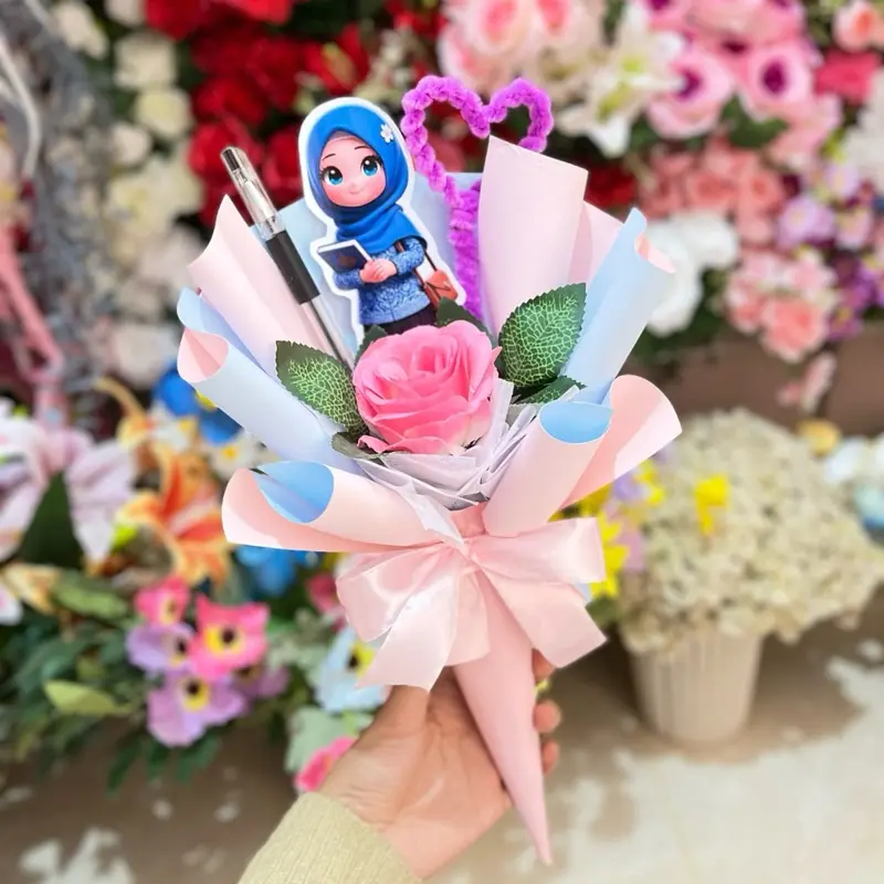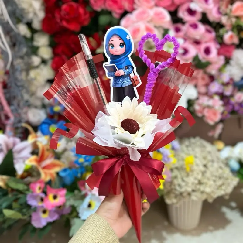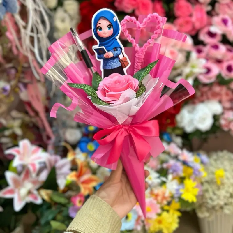 Buket Cone Hari Guru dengan desain karakter lucu dan warna cerah. Cocok untuk hadiah spesial yang menarik perhatian. Desain karakter yang unik membuat buket ini menjadi pilihan yang tepat untuk menghargai guru. Warna cerahnya menambah keceriaan pada hari guru.