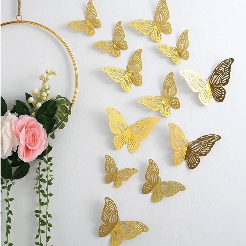 2 , Dengan desain kupu-kupu berlubang dan 3D, stiker dinding ini memiliki gaya yang indah dan kreatif.