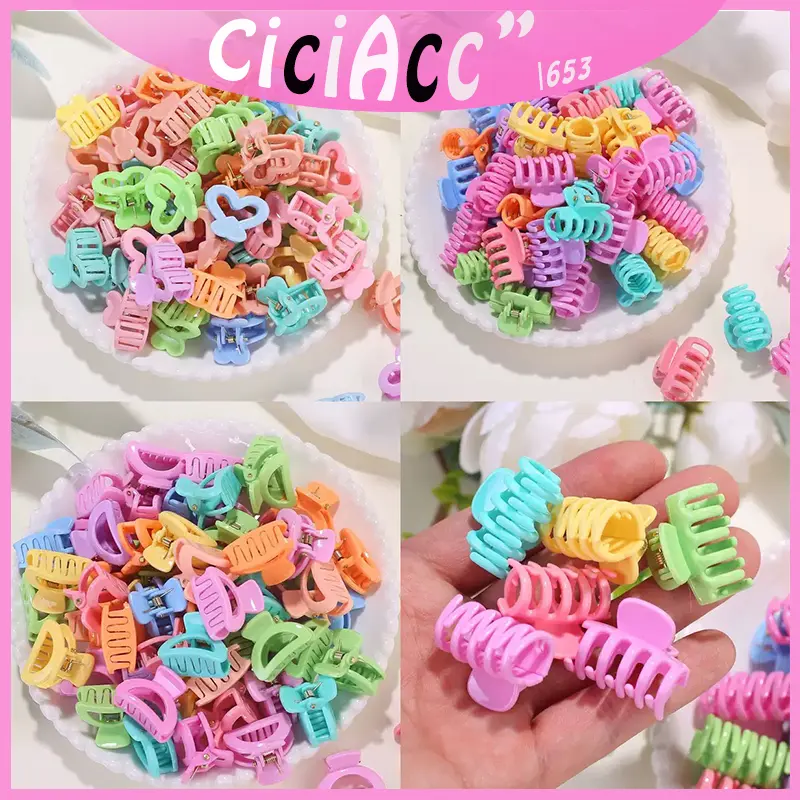 5. Cici-50pcs Jepit Rambut Poni Mini Mix Motif 2.5cm Toples Model Lucu Jepit Rambut Anak Isi 20pcs Hairclip Warna-Warni Jepitan Kecil Rambut Style Anak Korea Jedai Korea Lucu Warna Warni