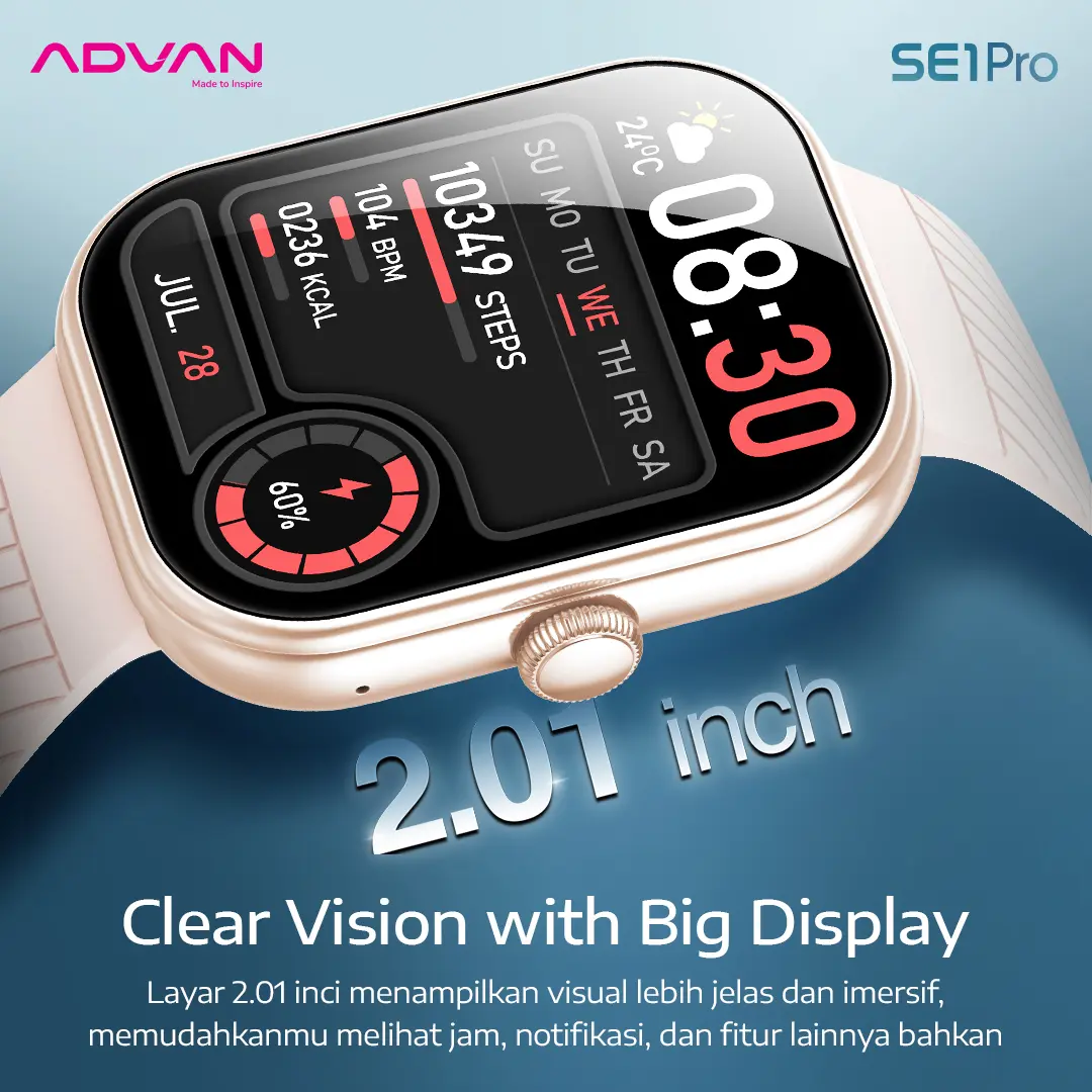 ADVAN Smartwatch SE1 Pro 2.01” inch 100+ Sports Modes Smart AI Assistant Bluetooth Call Waterproof IP68 1000mAh Up To 120 Days Standby Time