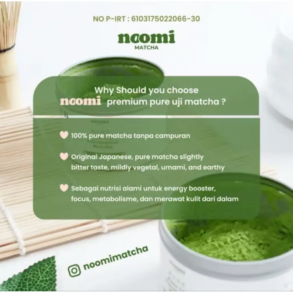 5. Noomi Matcha Pure Matcha Powder Premium Grade 100gr No Additional Matcha Bubuk