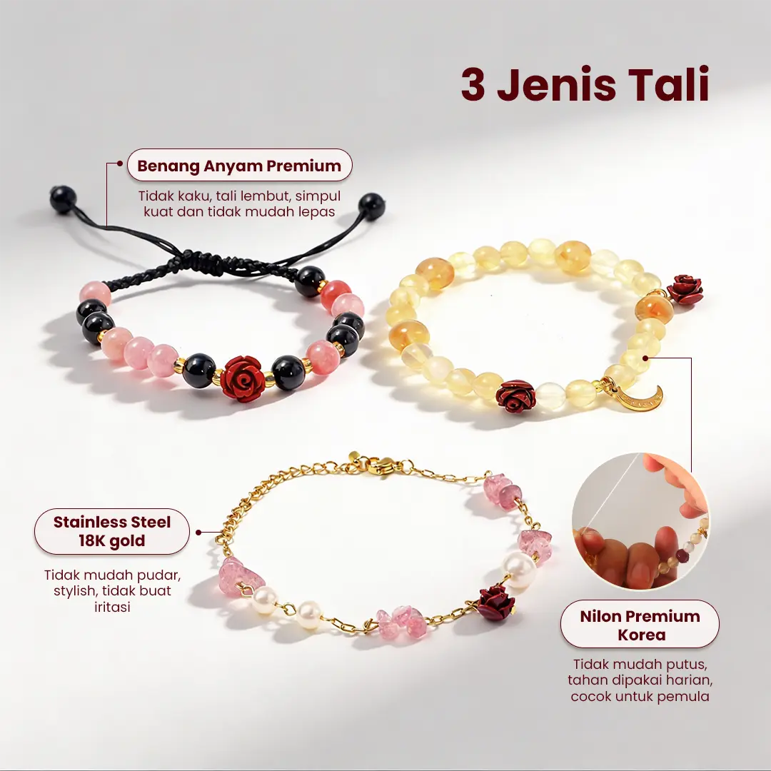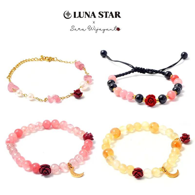 "Aura Rose" Natural gemstone bracelet collection by Luna Star X Sara Wijayanto. Some energies cannot be seen, yet they stay with us. Finding inner power within oneself.