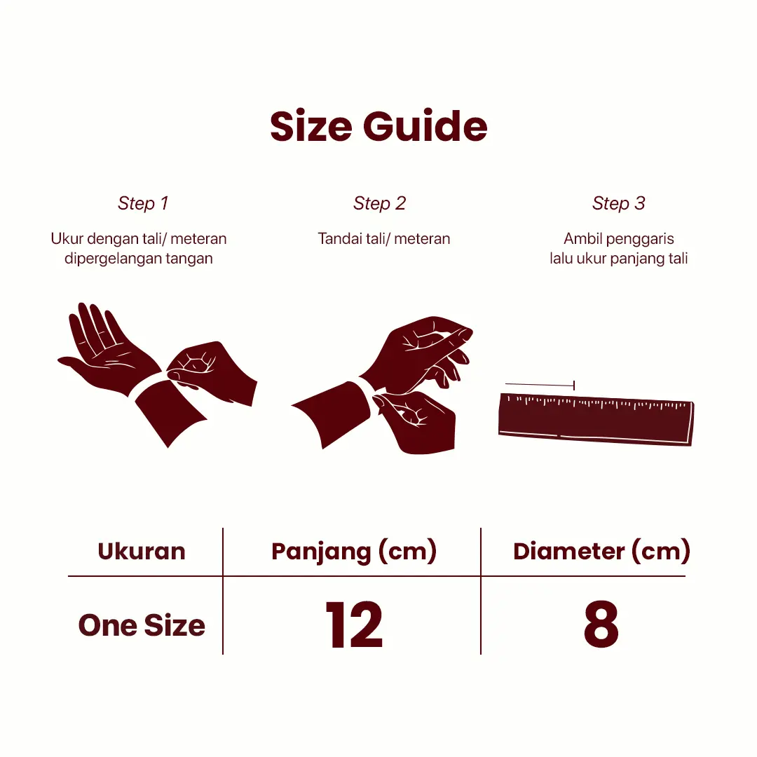 • ONE SIZE, Dapat dipakai untuk ukuran pergelangan tangan : ± 15-20 cm