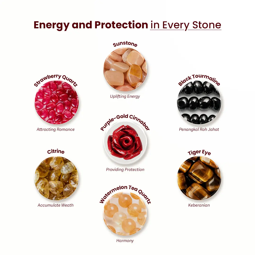 • Purple-gold Cinnabar Rose: Ancient and powerful, a timeless guardian that wards off harm. Shields your spirit while anchoring you to hidden wisdom.