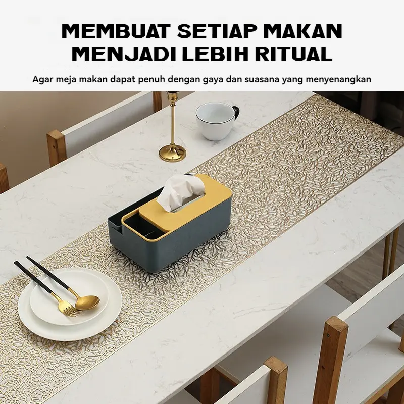 Taplak Meja yang elegan ini mempunyai kombinasi warna yang menarik. Sangat cocok untuk digunakan sebagai penutup meja makan dan ruang tamu, memberikan kesan modern dan stylish.