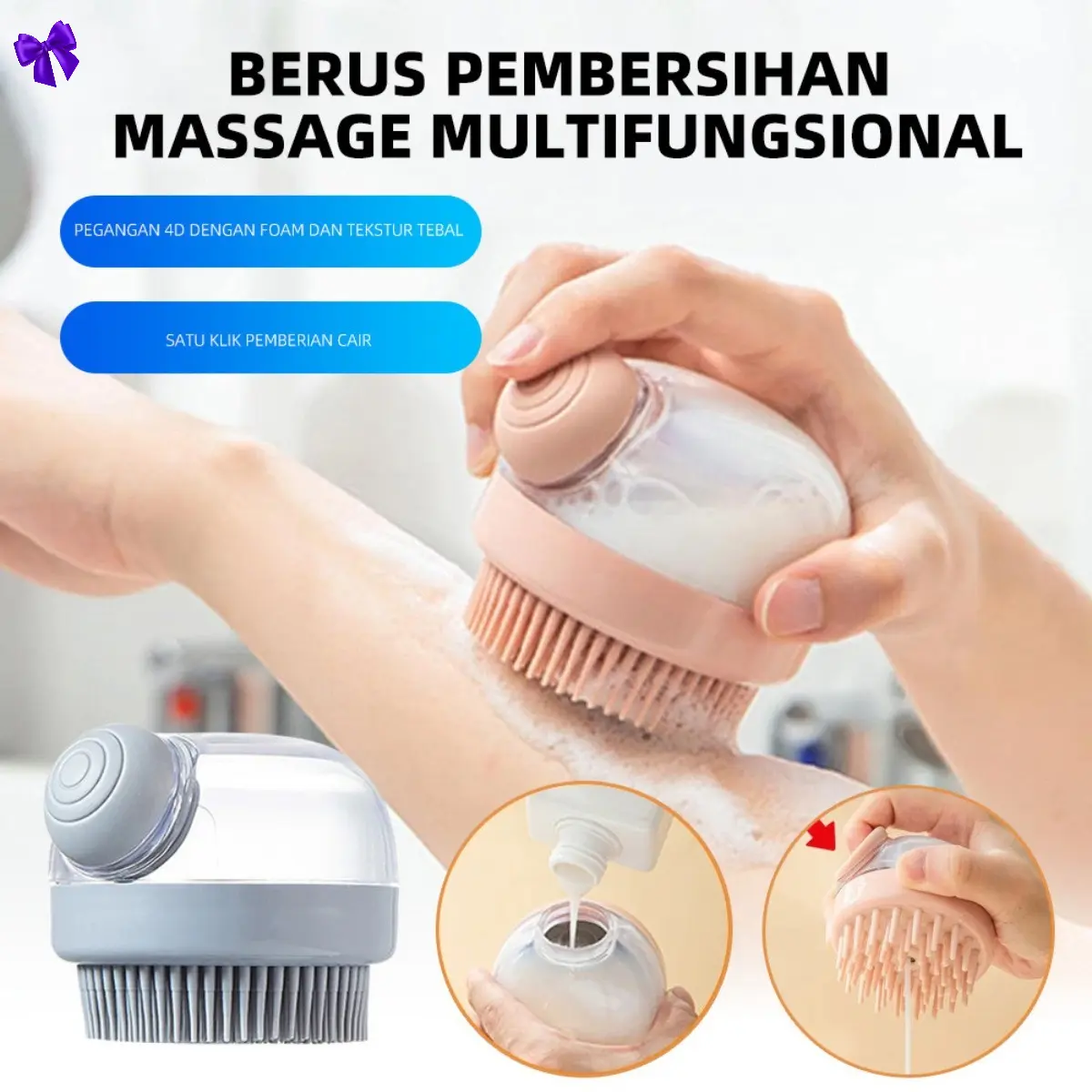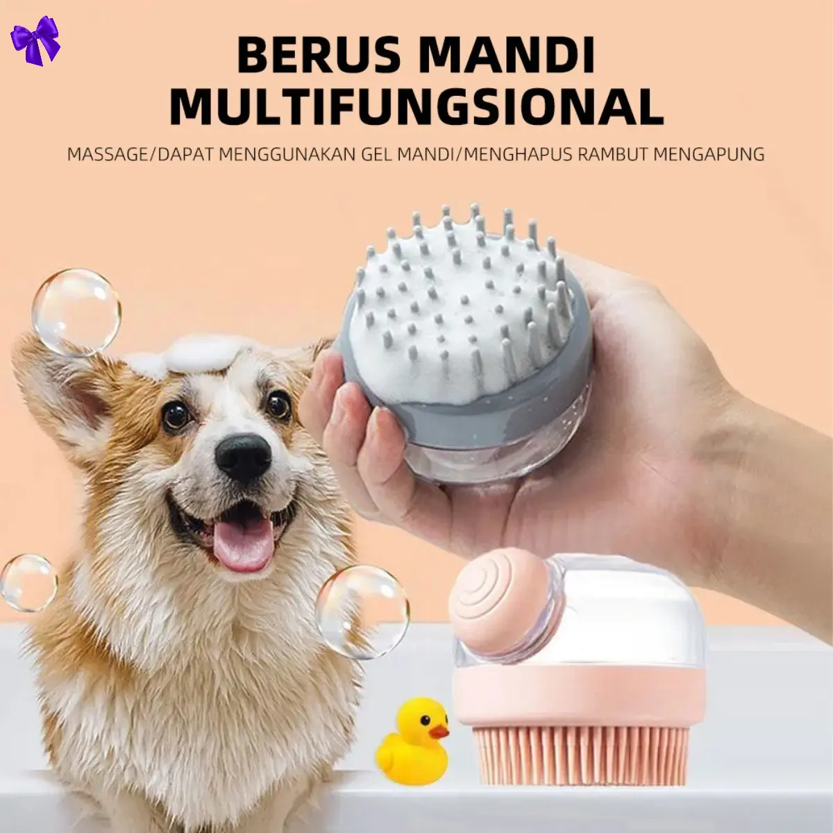 Sikat mandi ini didesain khusus untuk memudahkan perawatan hewan peliharaan Anda. Dibandingkan menggunakan tangan, sikat ini membersihkan tubuh hewan peliharaan secara maksimal. Keunggulan sikat ini terdapat wadah sabun yang dapat mengeluarkan sabun langsung ke bagian sikat saat ditekan, sehingga proses mandi menjadi lebih praktis.