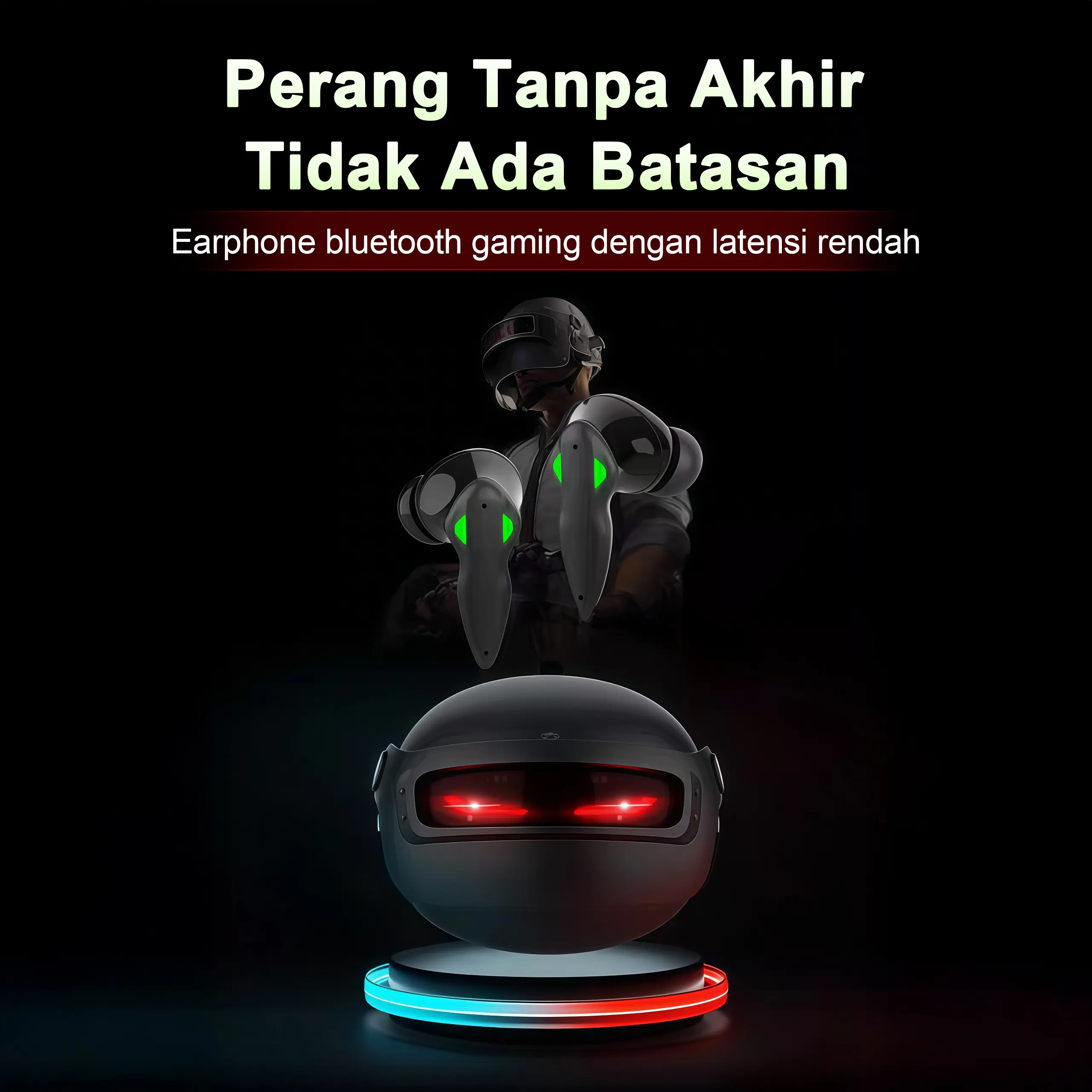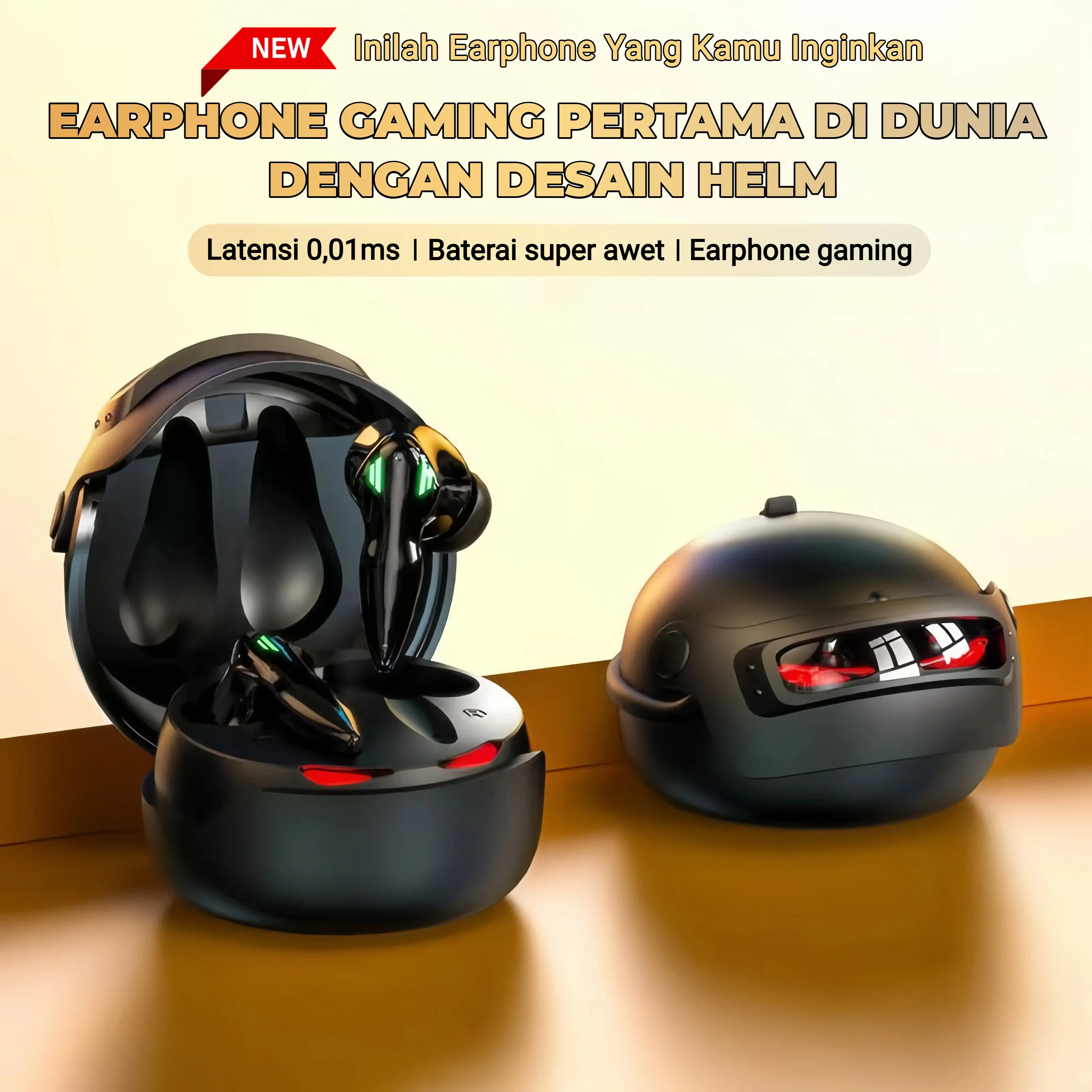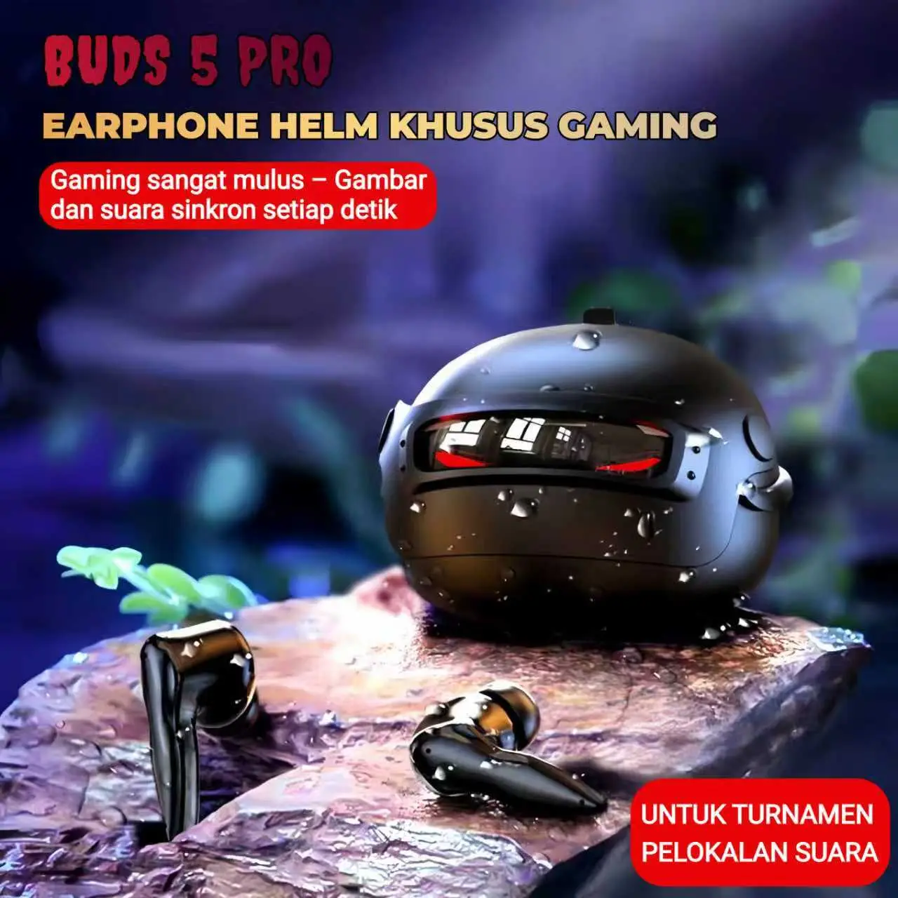BUDS 5 PRO Earphone Gaming Terbaru, Desain Helm Eksklusif Global, Efek Lampu Keren, Suara Stereo HiFi, Tahan Air IPX5, Mikrofon Built-in, Peredam Bising ENC, Kontrol Sentuh, Cocok untuk iPhone dan Android