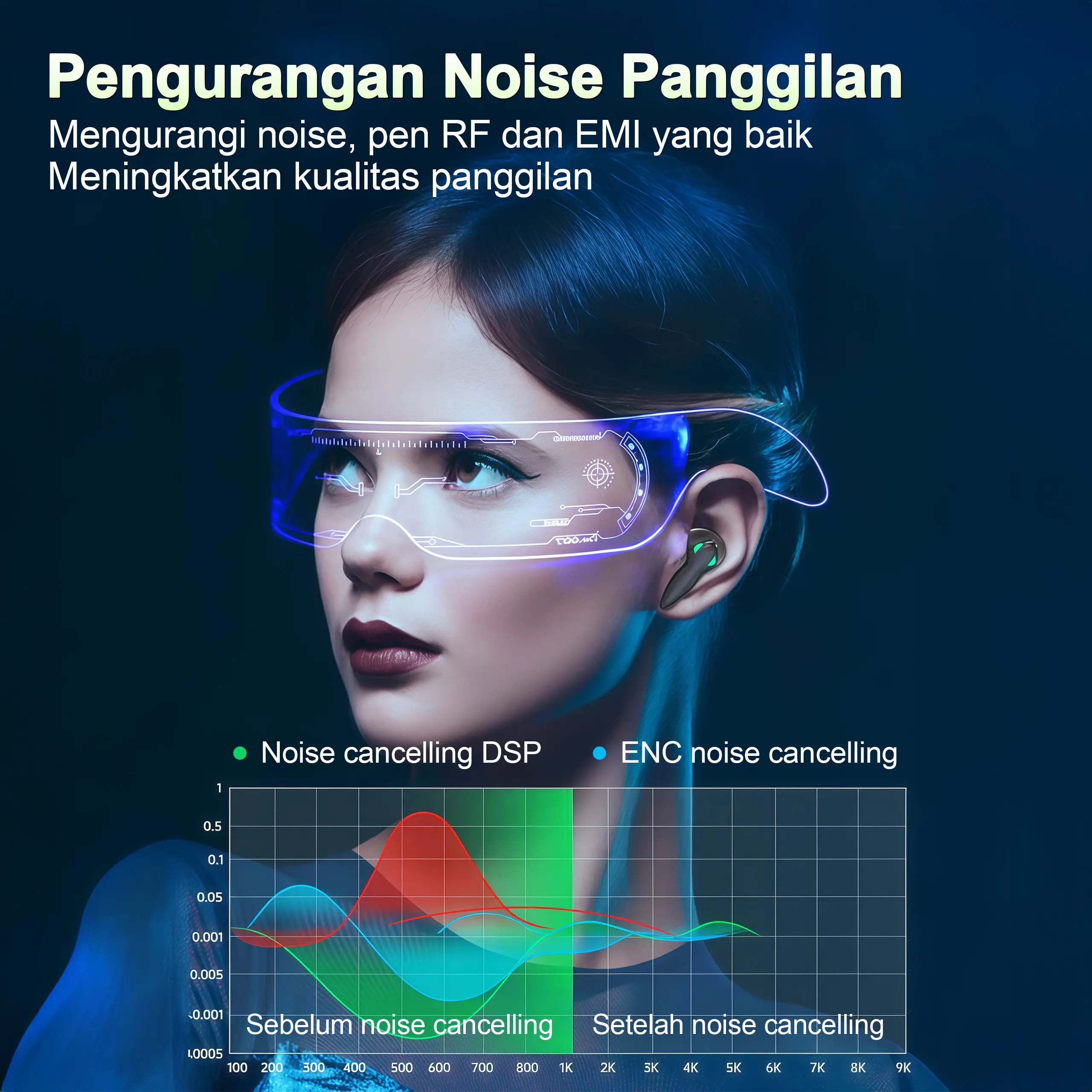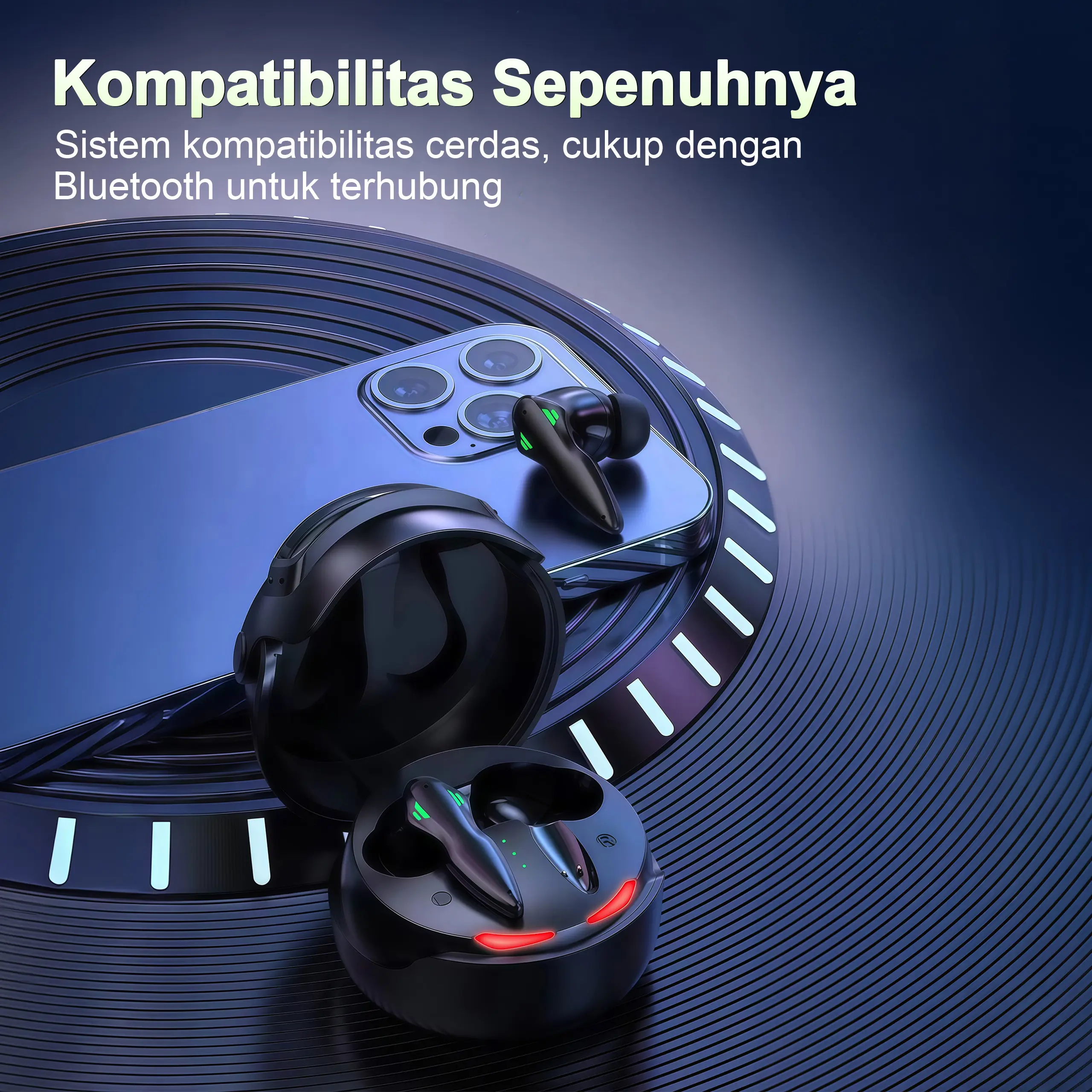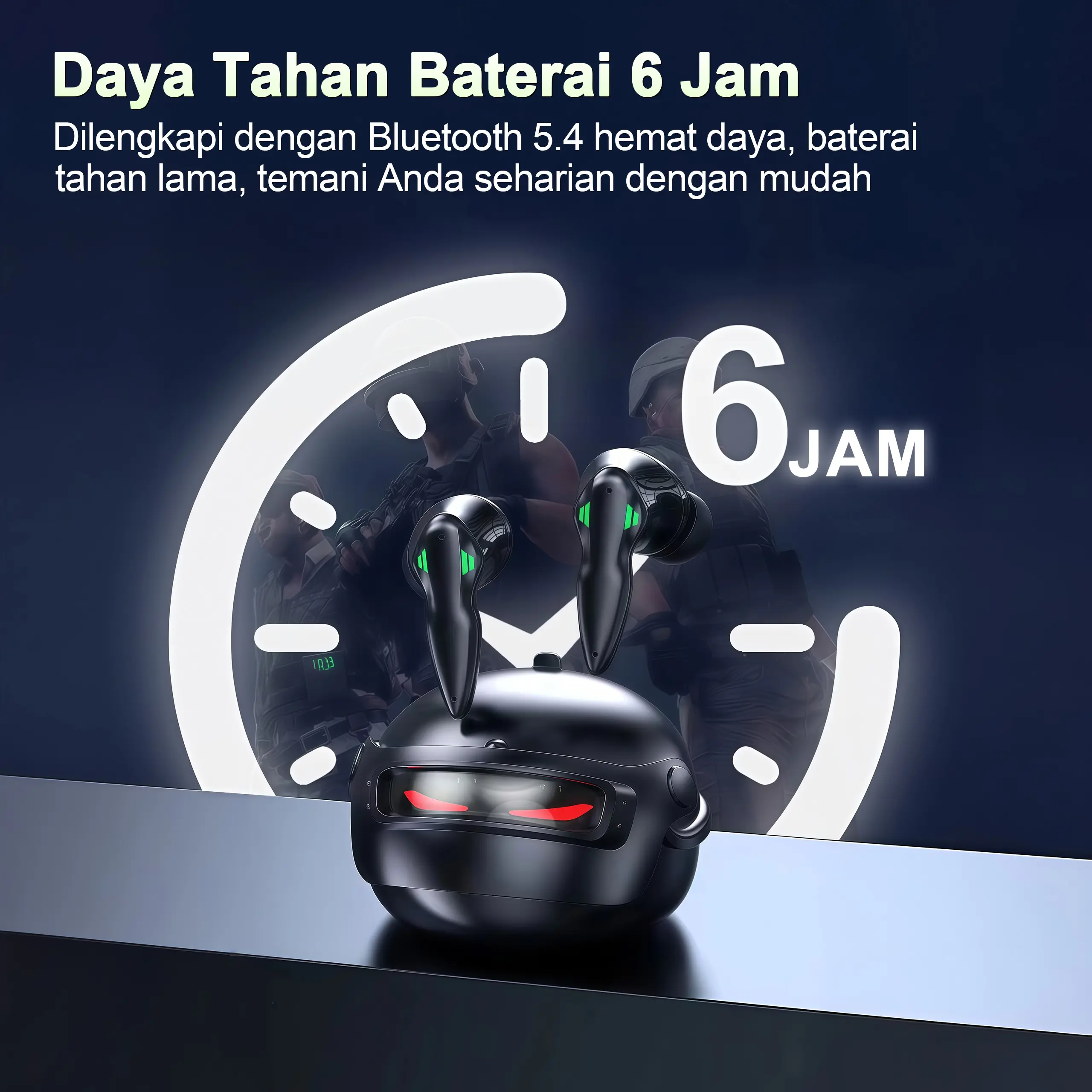 BUDS 5 PRO Earphone Gaming Terbaru, Desain Helm Eksklusif Global, Efek Lampu Keren, Suara Stereo HiFi, Tahan Air IPX5, Mikrofon Built-in, Peredam Bising ENC, Kontrol Sentuh, Cocok untuk iPhone dan Android