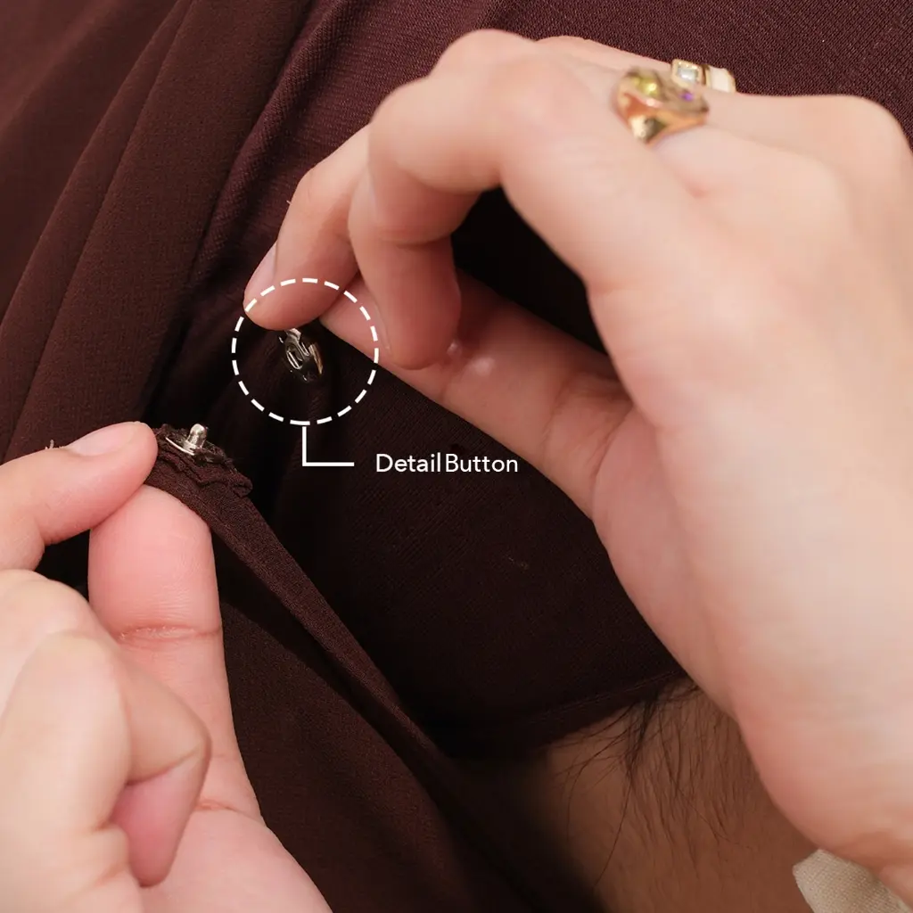 Potongannya yang oval ngasih vibe feminin khas Melayu, cocok buat kamu yang suka look anggun tapi tetap simple. Dan yes, udah include inner tie back biar makin nyaman dan stay all day
