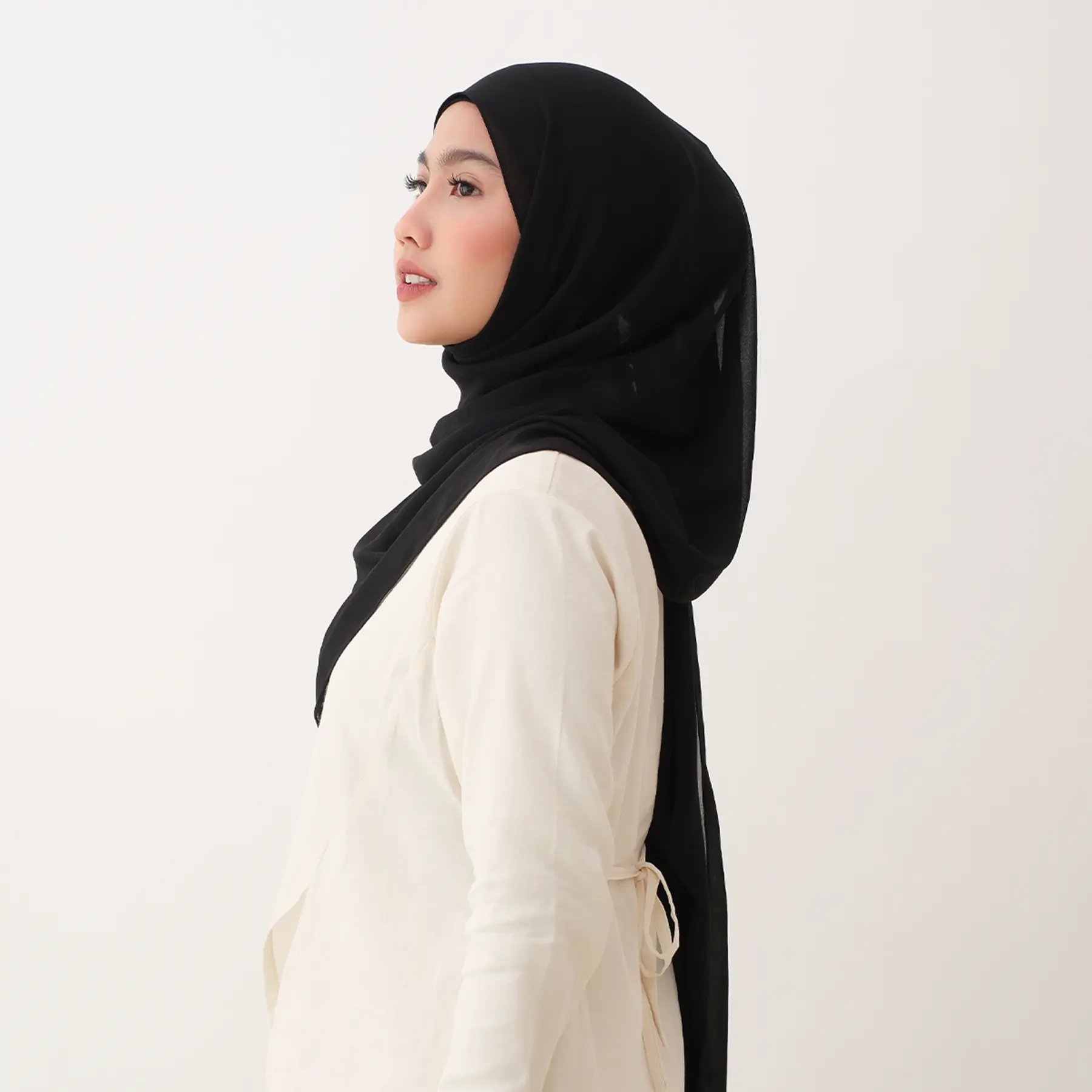 Dari bahan ceruty babydoll yang super ringan dan jatuhnya cantik, hijab ini ngasih kesan manis tapi tetap effortless. Dilengkapi dengan klip di ciput dan sisi kanan hijab, bikin kamu nggak perlu ribet lagi pakai jarum — tinggal klik, langsung rapi