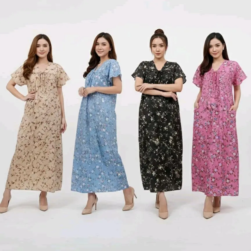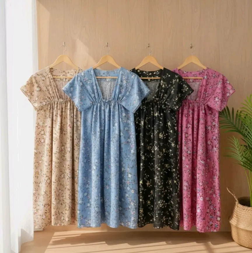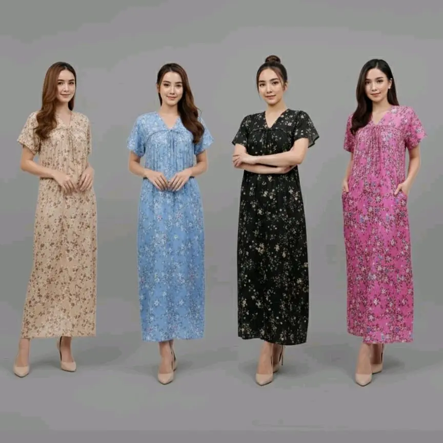 Daster Fuji adalah pakaian dalam rumah yang nyaman dan stylish, biasanya terbuat dari bahan katun atau rayon yang lembut dan breathable. Daster ini memiliki desain yang simple dan elegan, dengan warna-warna pastel yang manis dan motif yang feminin. Daster Fuji sangat cocok digunakan sehari-hari, baik untuk beraktivitas di rumah maupun untuk tidur. šš