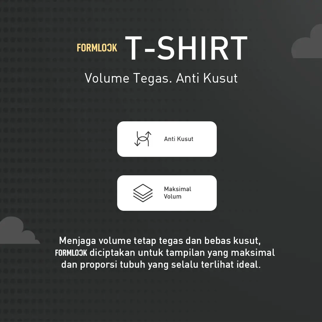 Tidak hanya memberikan volume yang tegas, FORMLOCK juga hadir dengan fitur TANGLE RESISTANT. Kalian tidak perlu khawatir pakaian cepat kusut atau kehilangan shape, cukup ambil, pakai, dan langsung terlihat lebih sharp!