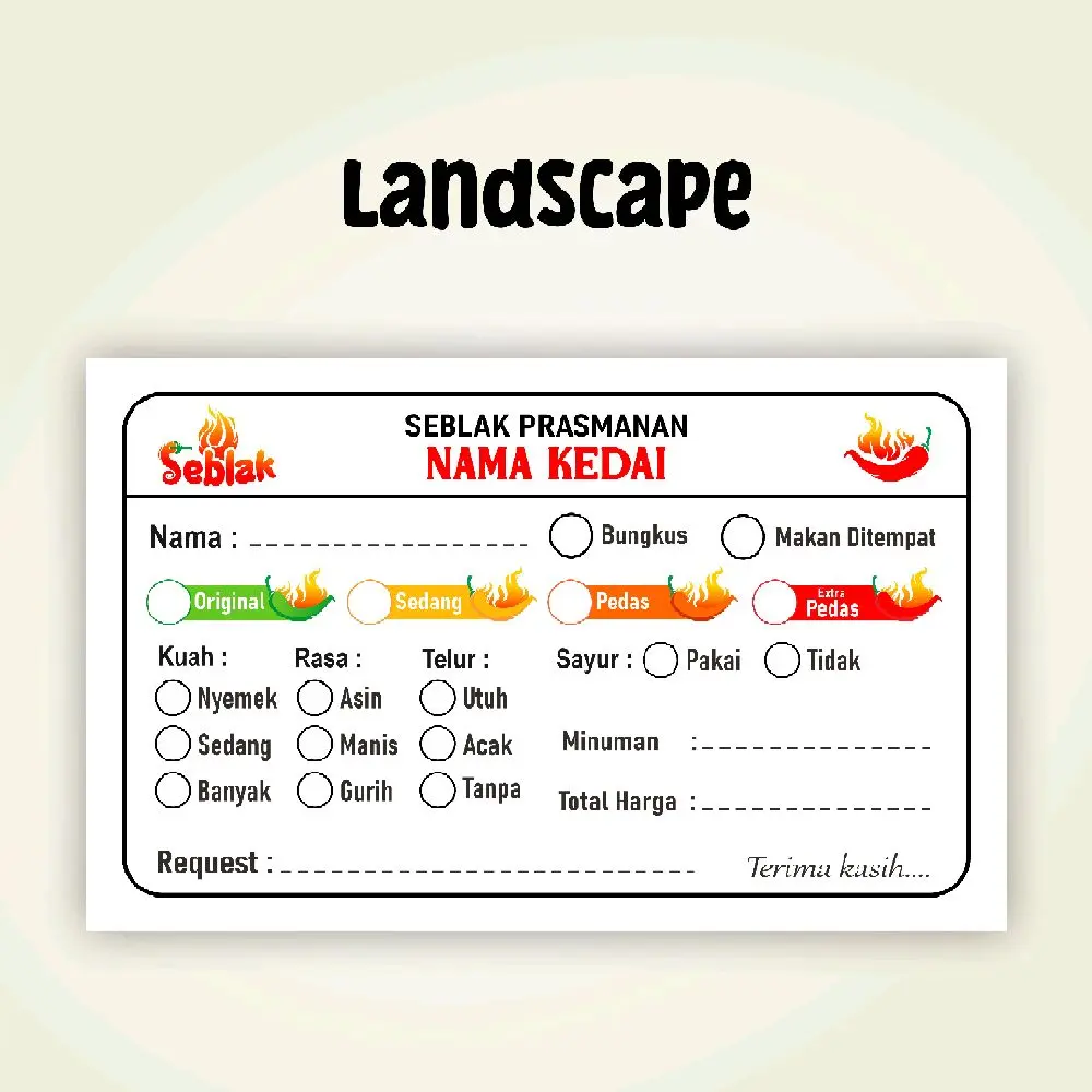 potong, namun tidak dijilid. Pastikan untuk menambahkan edit nama warung di