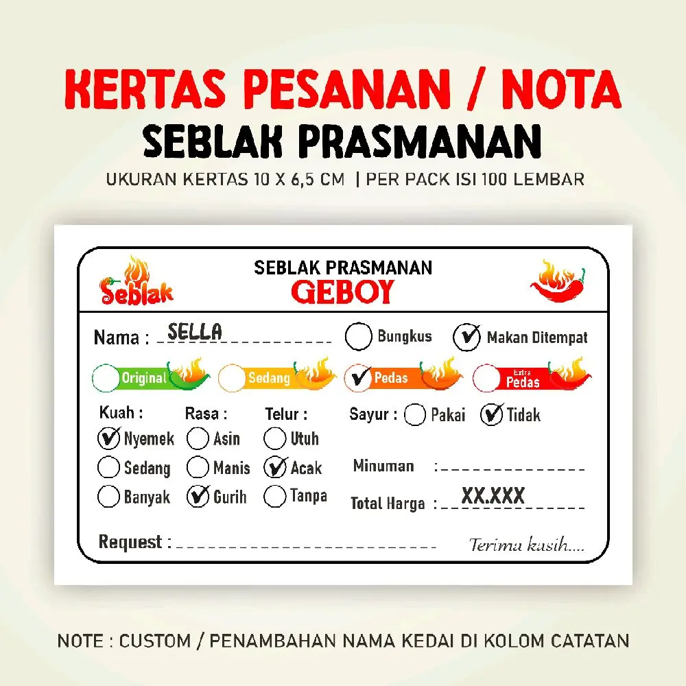 catatan pesanan. Tanpa catatan, pesanan akan dikirim dengan tulisan "SEBLAK