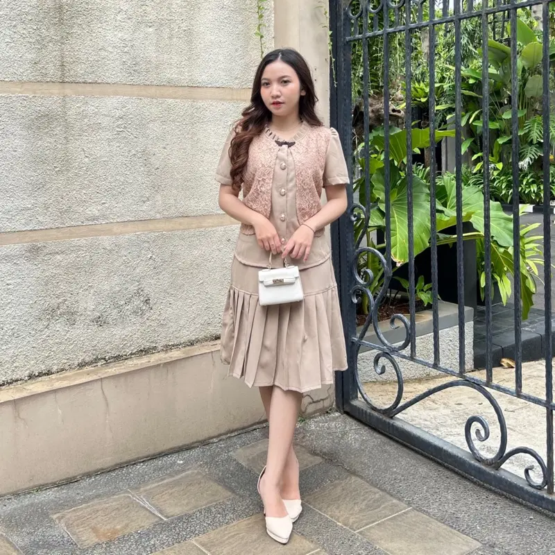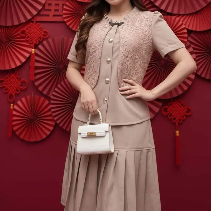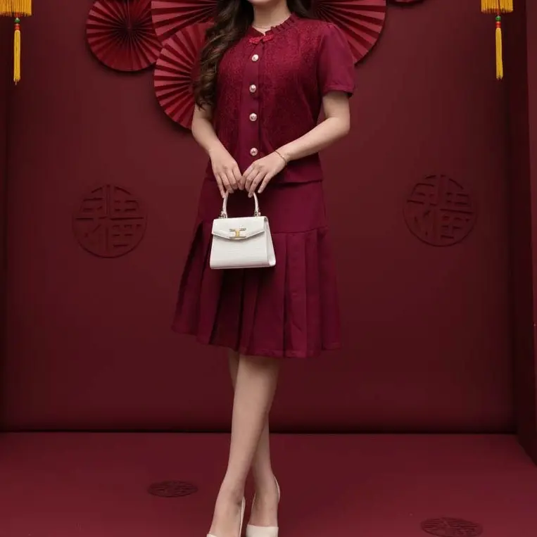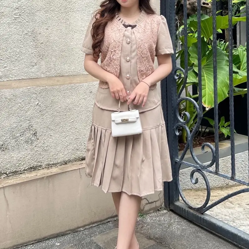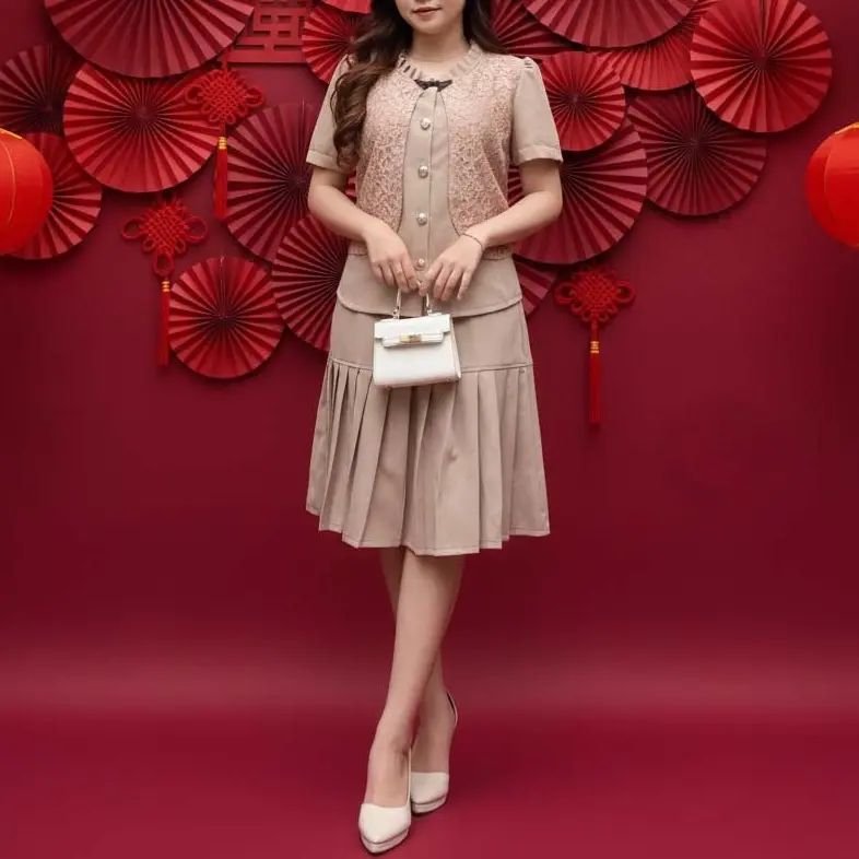 Oneset lengan pendek wanita baju lengan pendek & Rok midi 3059