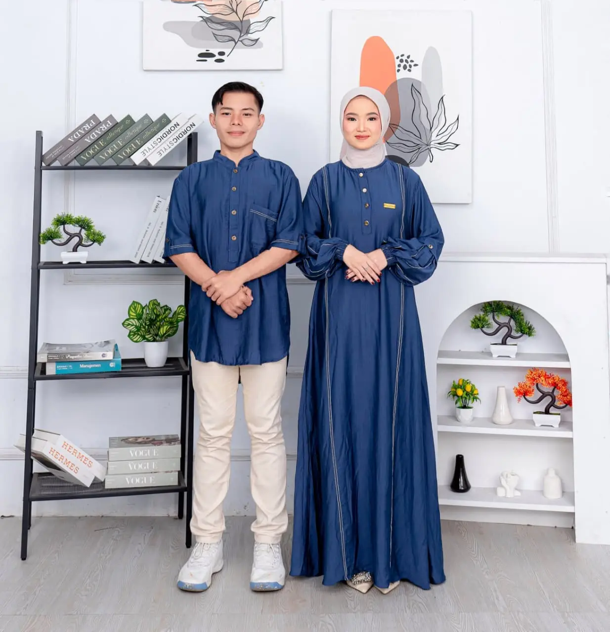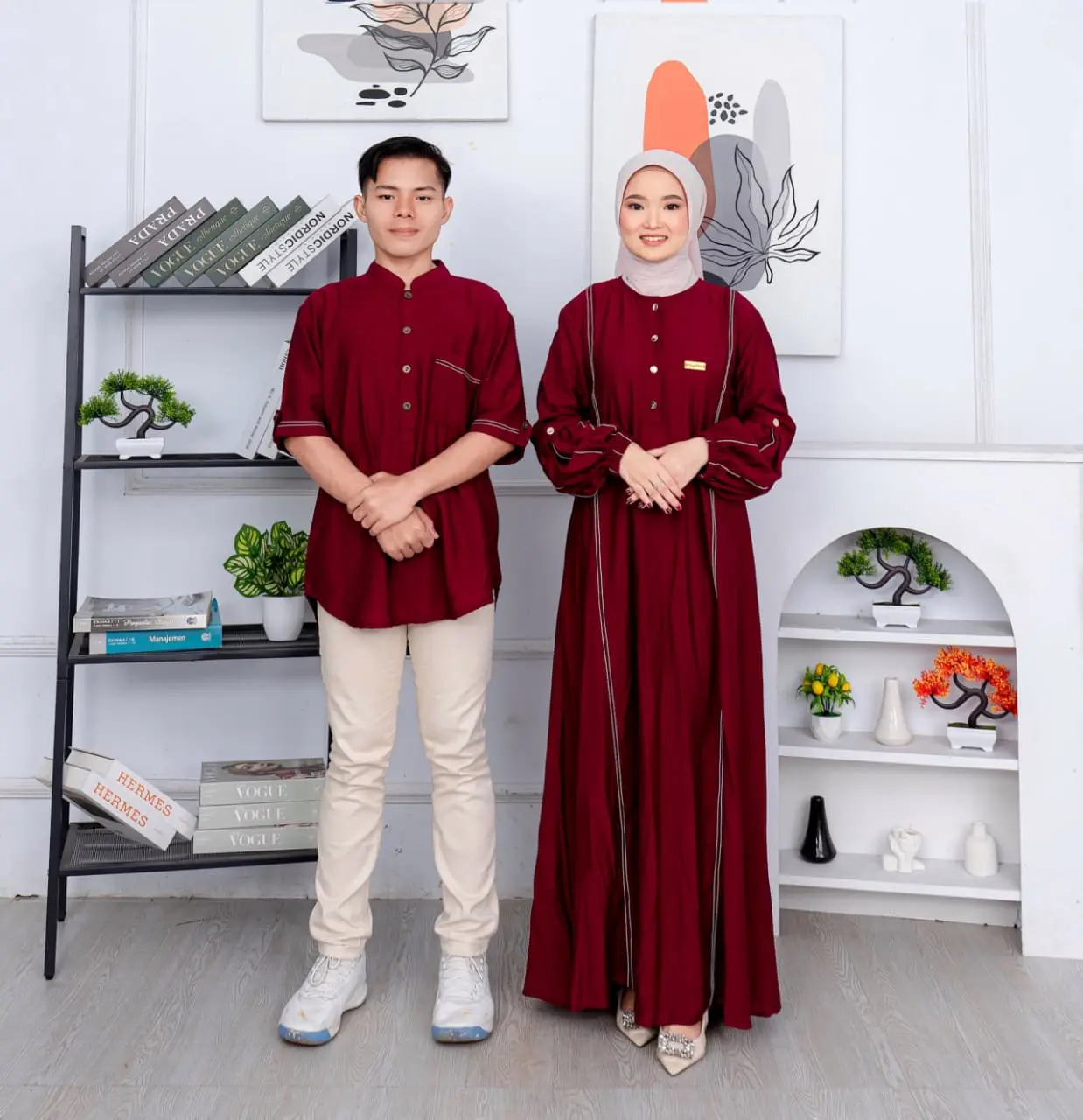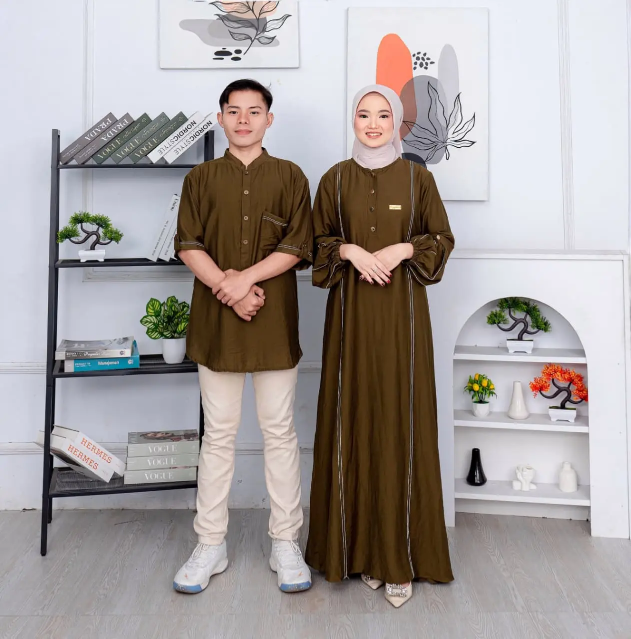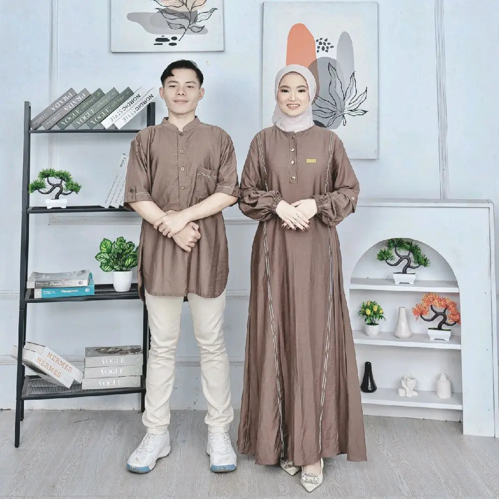Rizkia Dress Baju Gamis Terbaru Elegan Mewah Baju Lebaran 2026 Couple Sarimbit Koko Bahan Polo Linen