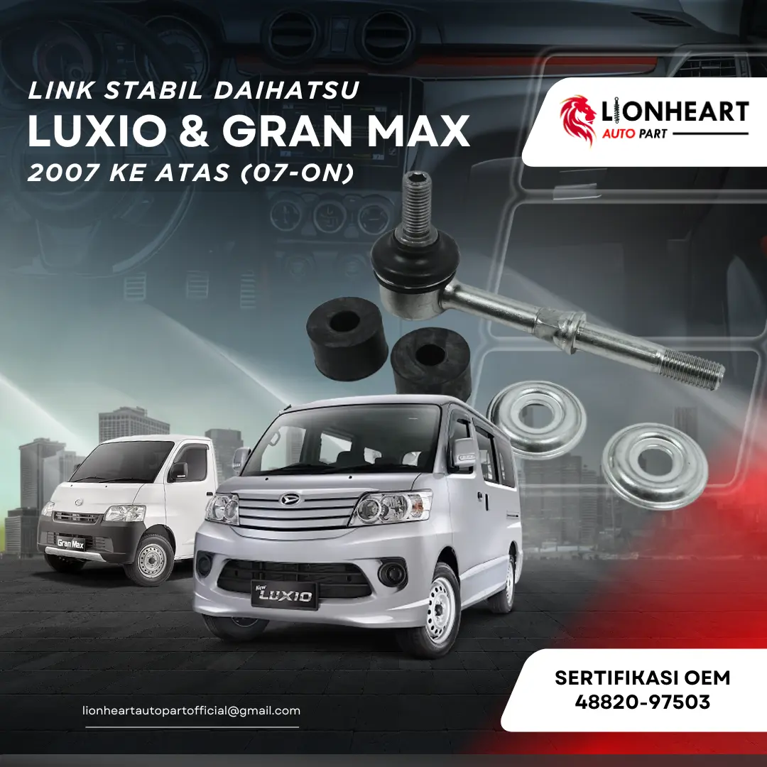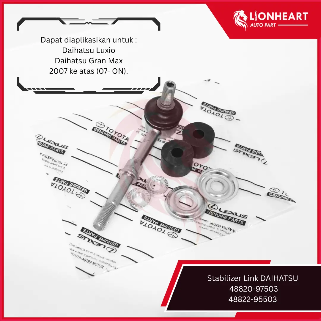 ยทSet Karet & Besi: Link Stabilizer LIONHEART hadir dalam set karet dan besi, cocok untuk Daihatsu Luxio & Grand Max. ๐