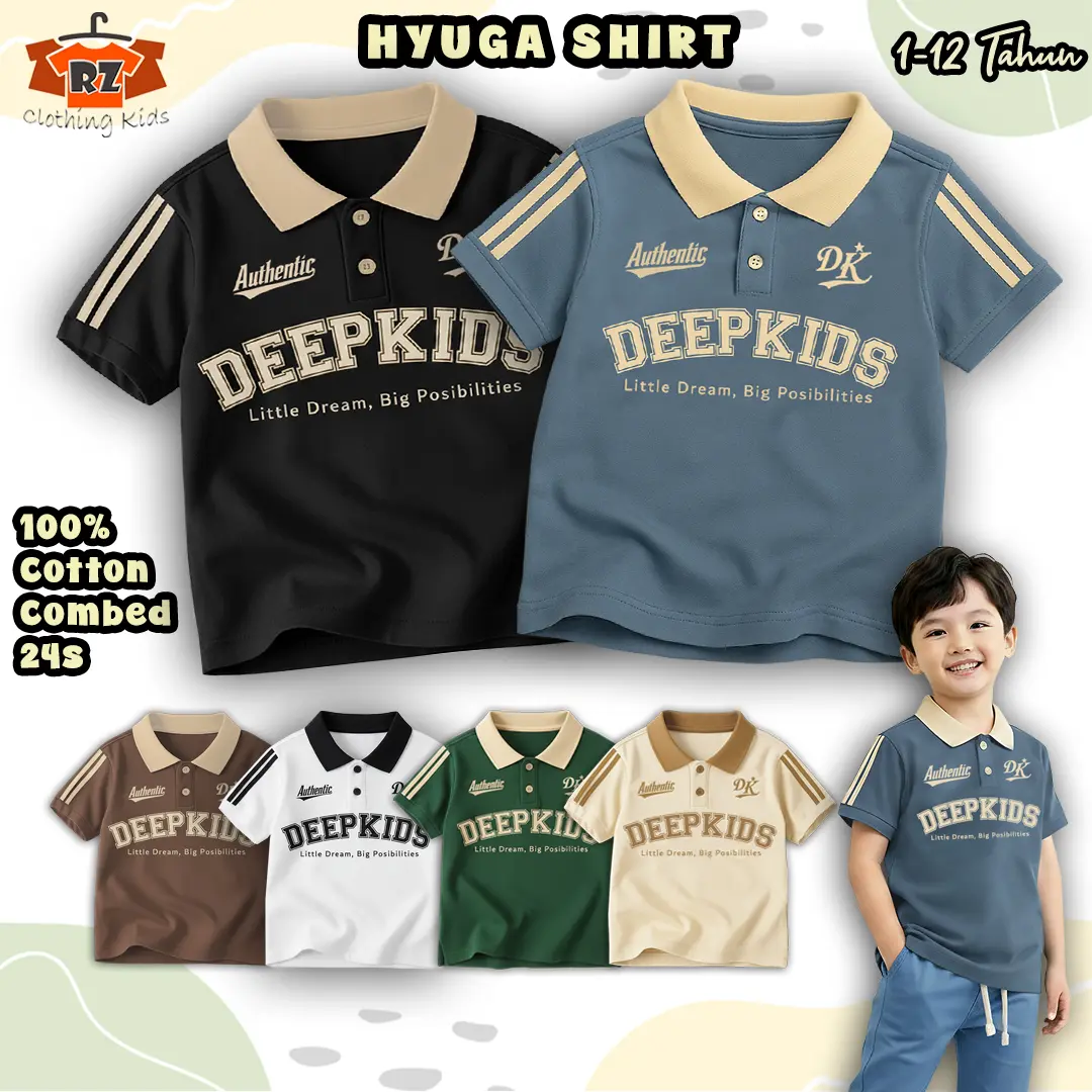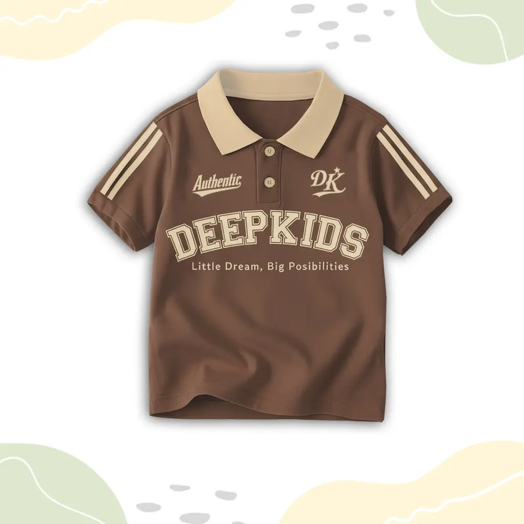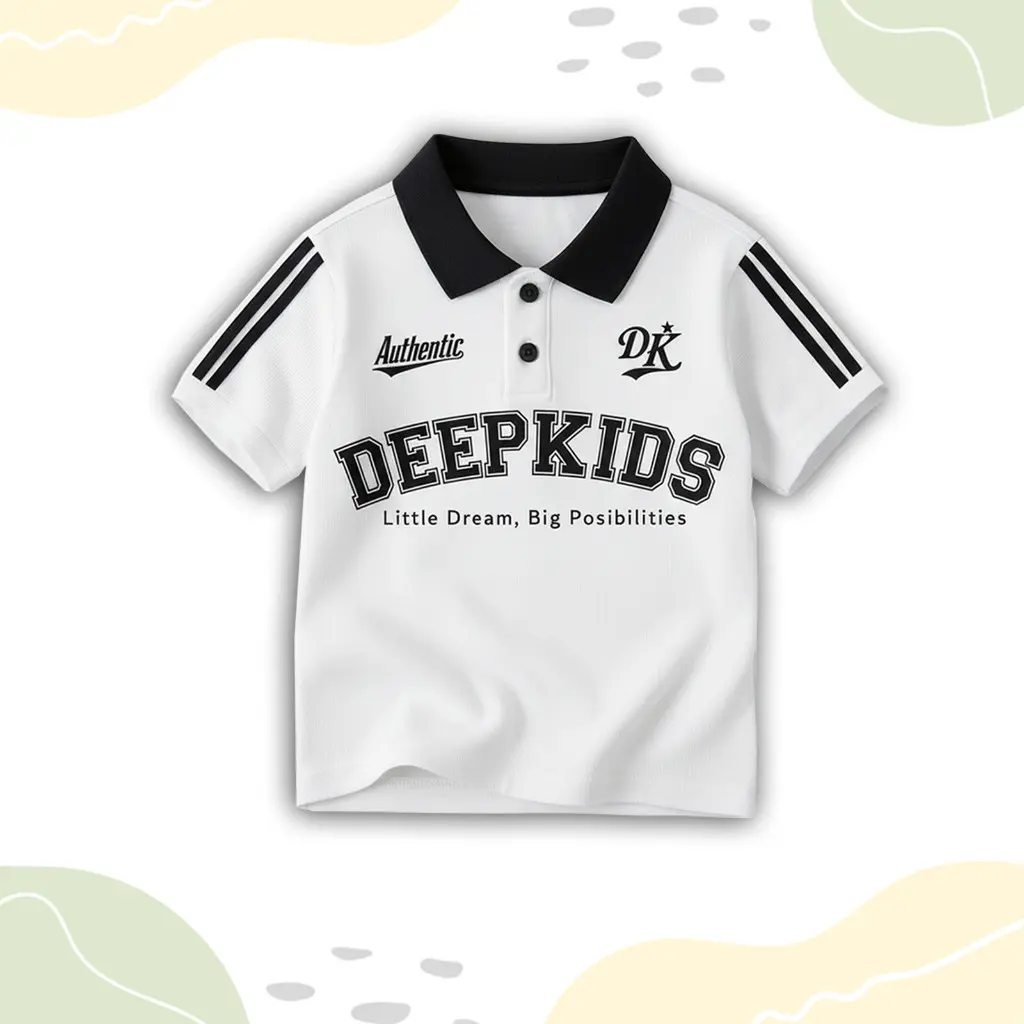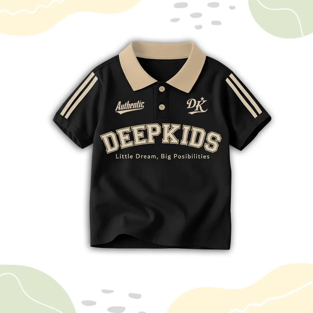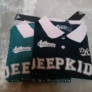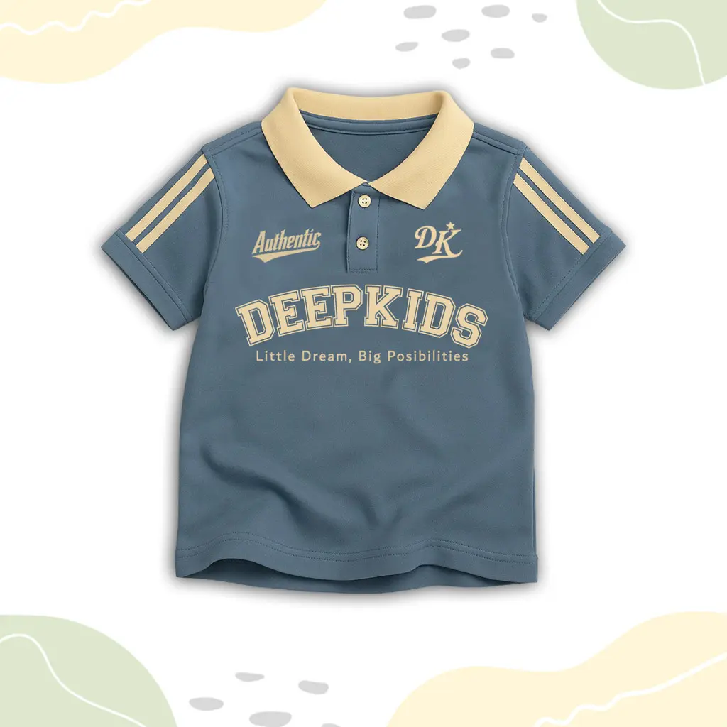 • Terdapat variasi: kerah polo bahan rib (bukan bahan kaos), kancing aktif, sablon plastisol, serta kombinasi desain dan warna menarik yang membuat anak tampil elegan saat memakainya.