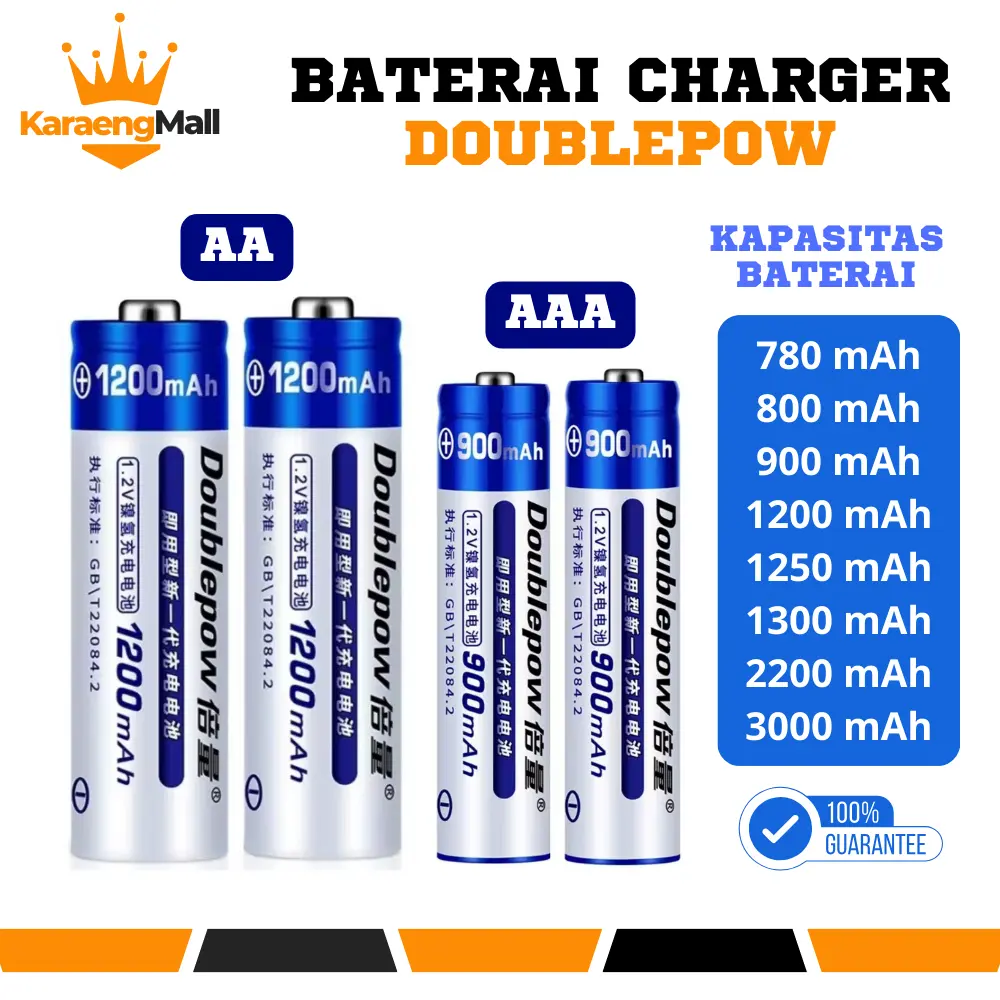 KaraengMall Baterai Cas AAA AA Isi Ulang Charge Battery Recharge DOUBLEPOW 780 -3000 mAh Nimh 1,2 V