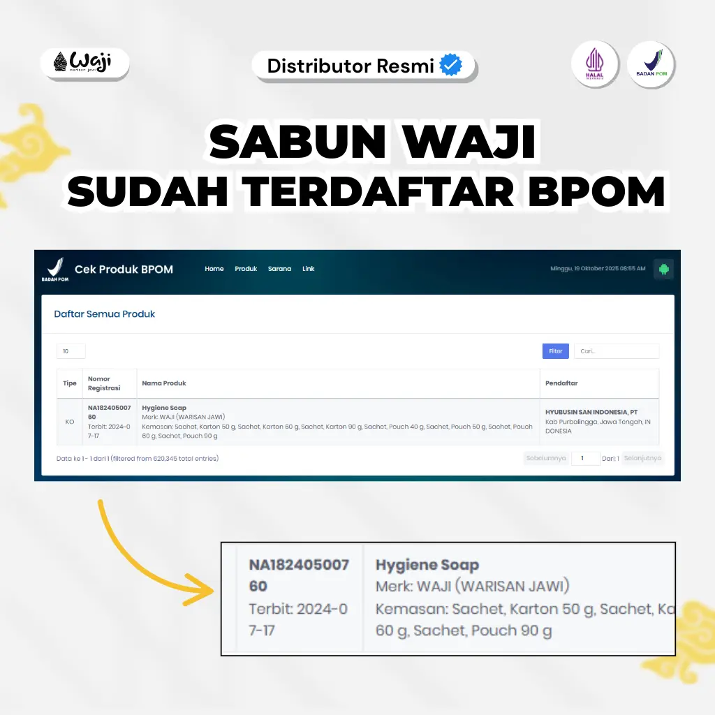 Sabun Waji sudah terdaftar di BPOM