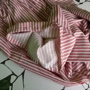 plss bagus bgttt bahannya sih ga nerawang yaa agak tebel gt bukan yang tipis bgttt tp buat aku yang tb 151 ini kepanjangan sih paling dipotong dikit aja lebih bagusss tp jujurr mau beli lagiiiii pls adain warna pink wkwk