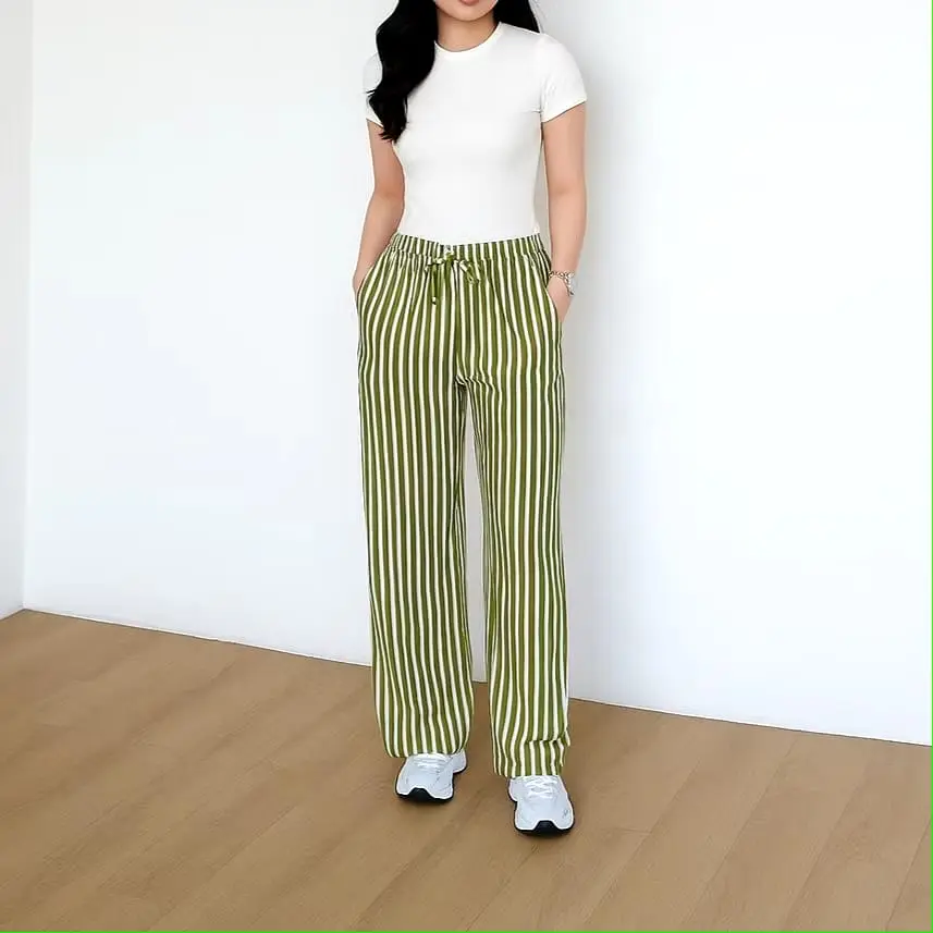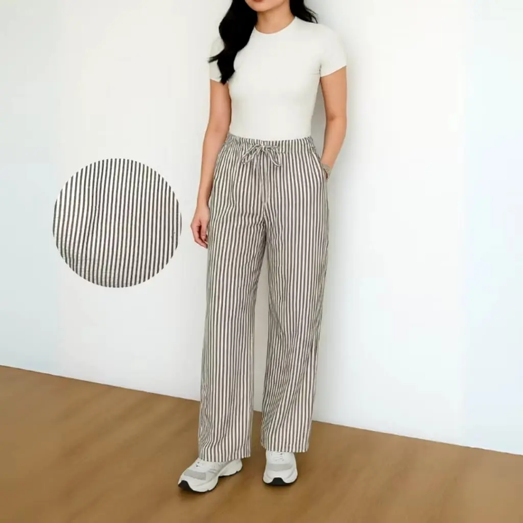 Celana Striped Pants Kulot Wanita Garis Premium Celana Kulot High Waist Cewek Kulot Tali Serut