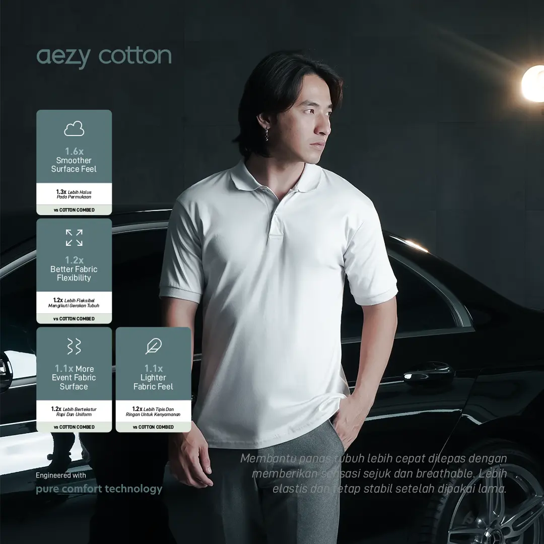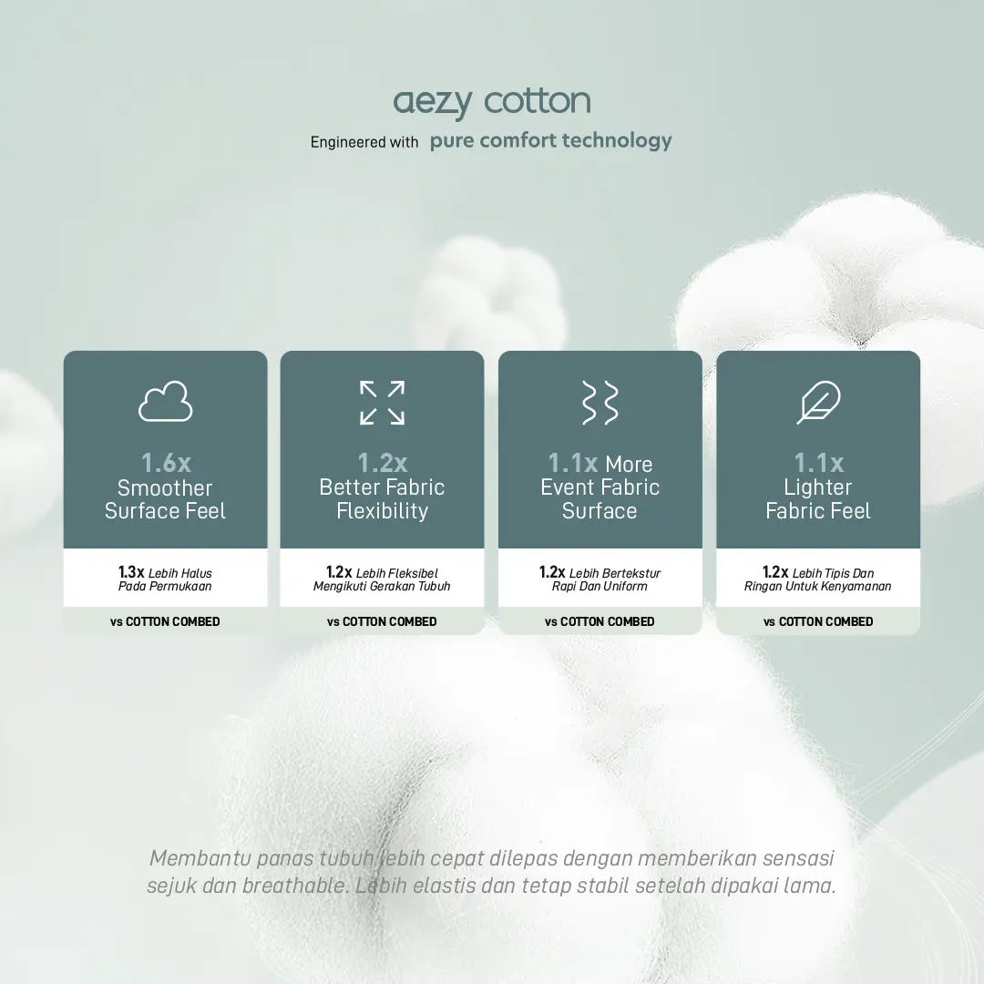 Material kami didesign dengan FEATHER LIGHT dan RUBBER STRETCH untuk mengakomodasi mobilitas kalian. Tinggalkan segera pakaian kalian yang berat dan kaku sehingga membuat tubuh terasa cepat lelah dan tidak bebas bergerak karena AEZY seringan bulu dan selentur karet!
