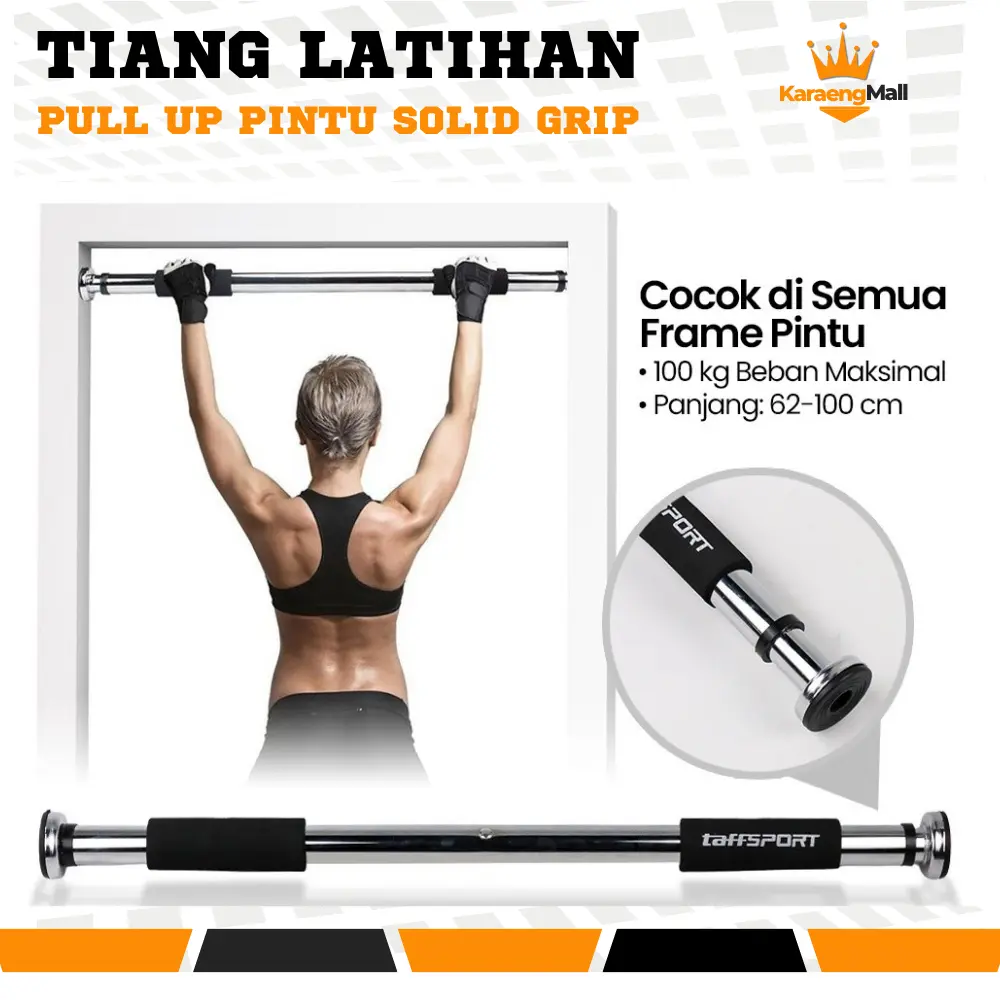 TaffSPORT Tiang Latihan Pull Up Pintu Door Gym Bar Solid Grip 62-100cm / Pull Up Bar Door Chinning Alat Fitness Olahraga Di Rumah / Pull Up Bar Dinding Door Chinning Alat Pull Up Dinding Pintu Fitnes Olahraga / Tiang Tongkat pull up Iron Gym Pintu Rumah