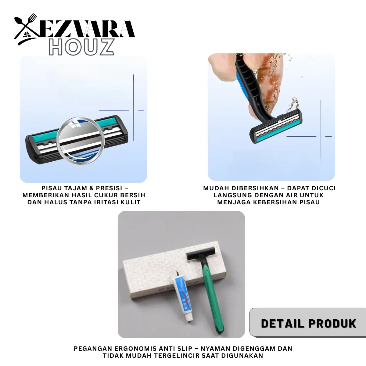 5. EH - Alat Cukur Manual Tajam Berkualitas Tinggi Mudah Digunakan Untuk Merapikan Kumis Rambut Leher dan Jenggot Pria