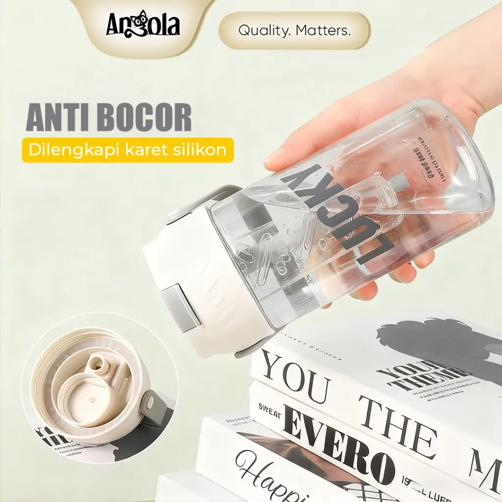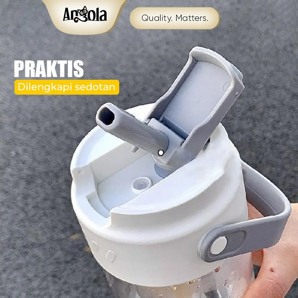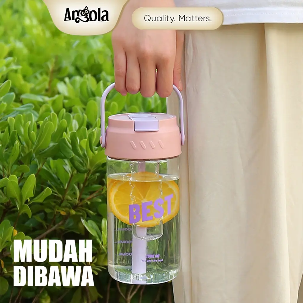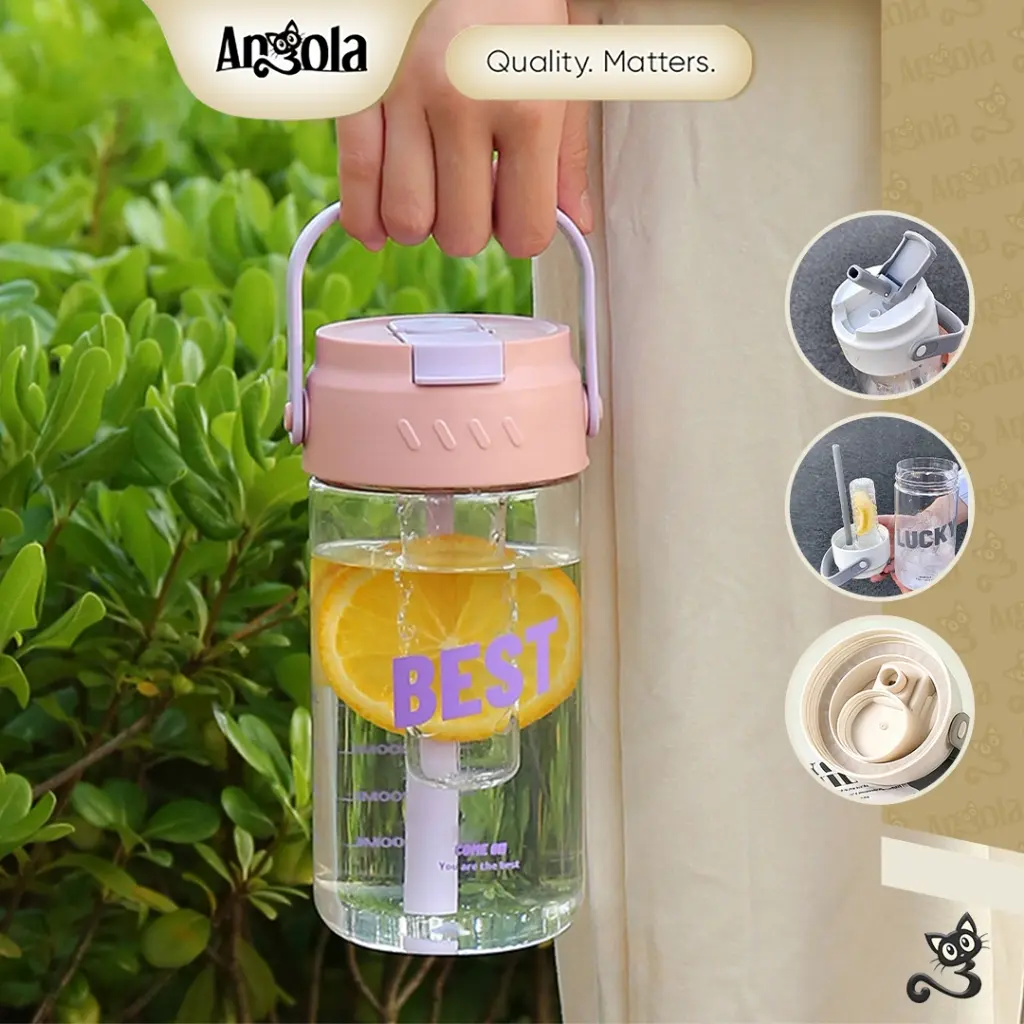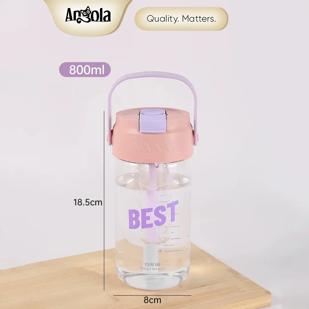 Nikmati minuman favorit Anda dengan Botol minum W03 Angola berdesain minimalis dan praktis. Dilengkapi sedotan, saringan teh, dan pegangan. Kapasitas besar 800ml membuatnya ideal untuk dibawa ke kantor, rumah, sekolah, atau saat bepergian. Anti bocor dengan karet silikon, sehingga aman disimpan di dalam tas tanpa khawatir tumpah.