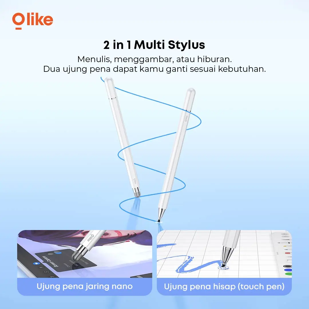 2-in-1 Multi Stylus: Tulis, gambar, atau bersantai dengan satu pena multifungsi yang memiliki dua ujung berbeda. Ganti ujung stylus sesuai kebutuhanmu — praktis untuk berbagai aktivitas, dari menulis catatan hingga membuat ilustrasi digital.