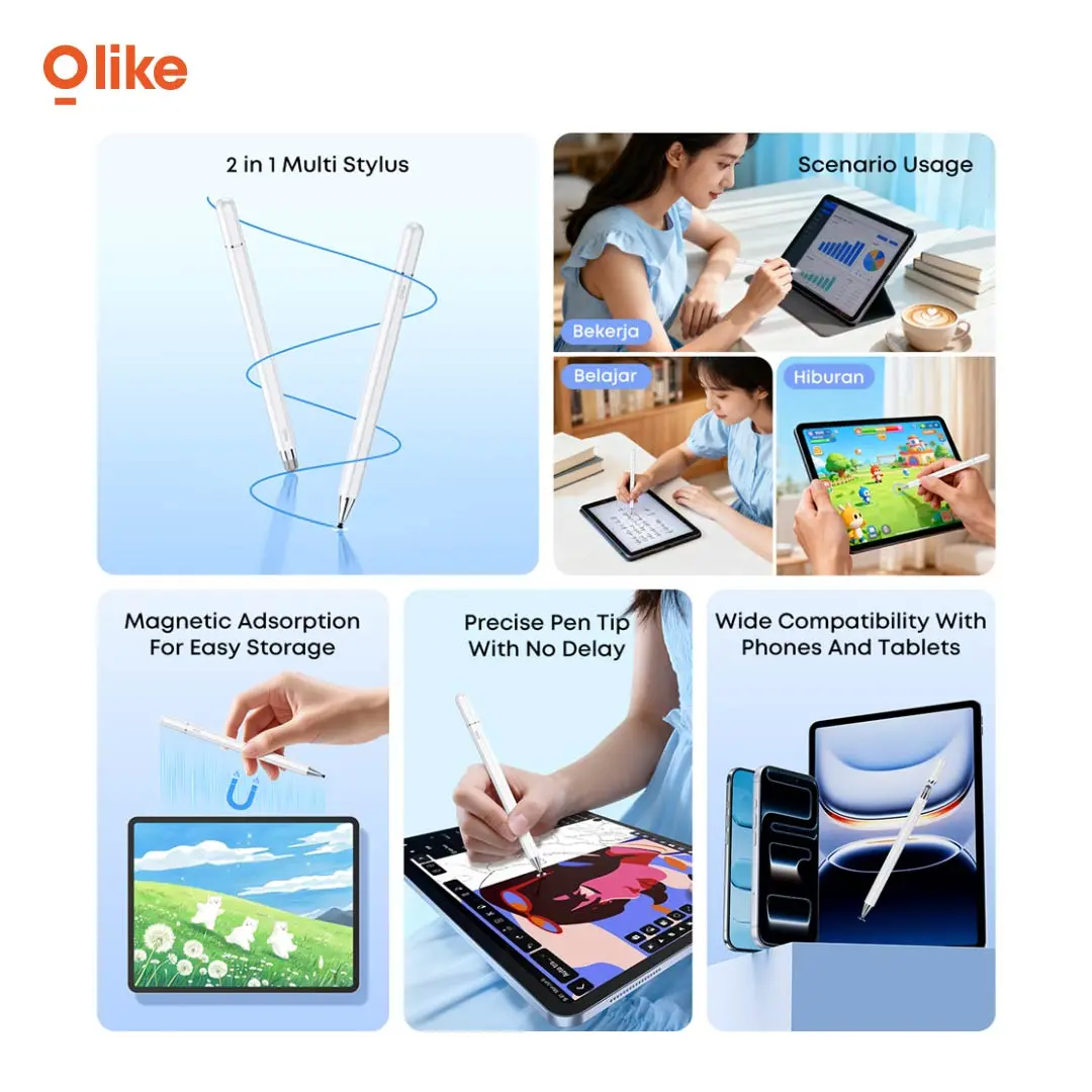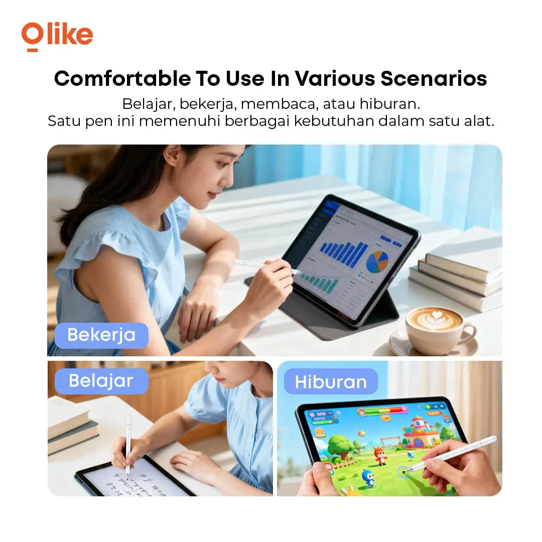 Comfortable for Use: Stylus Olike PN2 dirancang untuk kenyamanan maksimal. Cocok digunakan untuk belajar, bekerja, membaca, maupun menikmati hiburan — semua bisa dilakukan hanya dengan satu stylus.