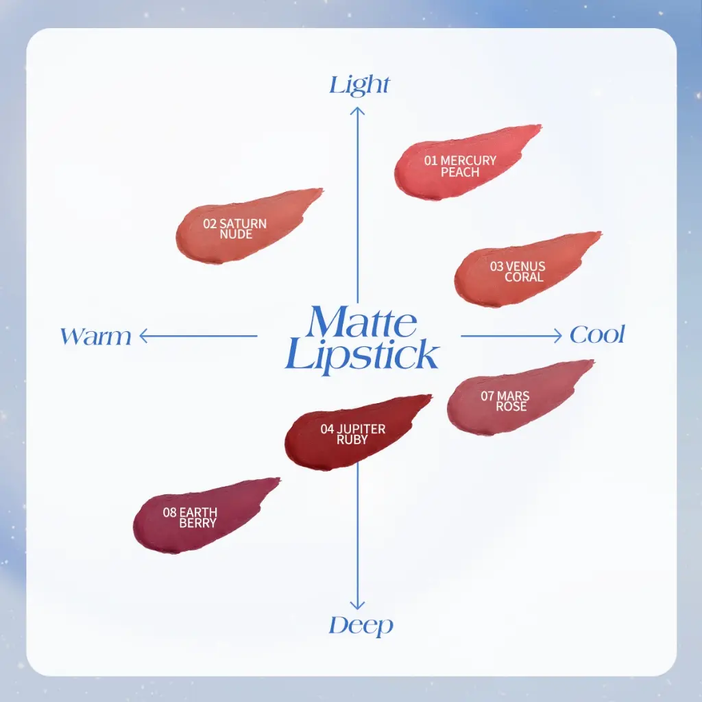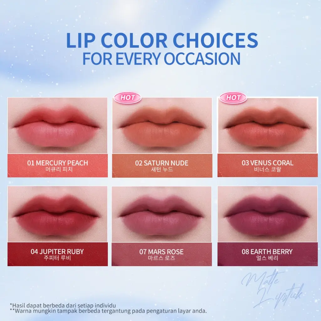 Memberikan warna yang berpigmentasi tinggi dengan finish matte sempurna hanya dengan 1 kali oles.