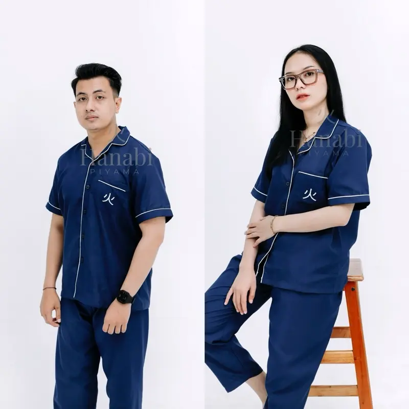 Produk ini adalah paket pasangan yang terdiri dari 2 celana dan 2 baju dengan harga yang lebih terjangkau dibandingkan membeli secara terpisah. Bahan kain yang digunakan adalah polymicro yang memiliki keuntungan tahan lama, mudah dirawat, dan nyaman dipakai.