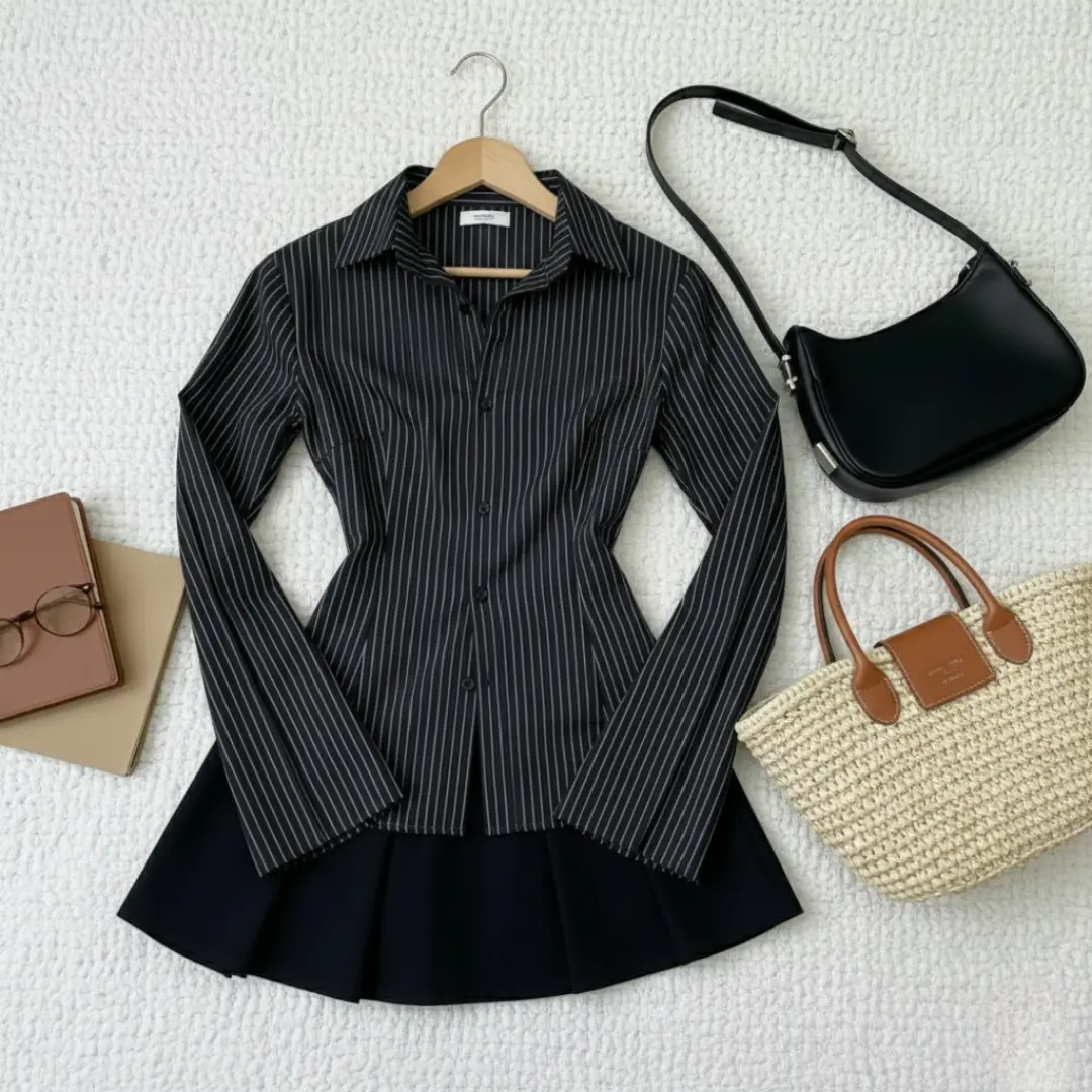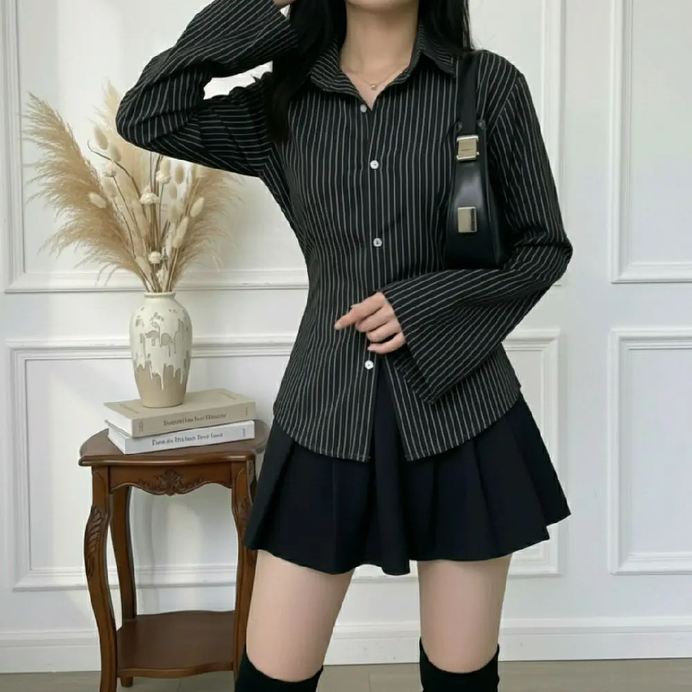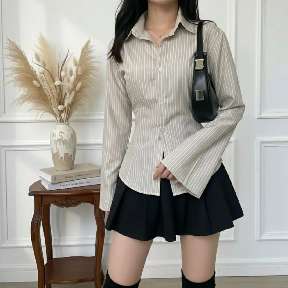 Ā·Kemeja salur model lengan trompet, desain terbaru dan kekinian. Cocok untuk tampilan modern Anda. š