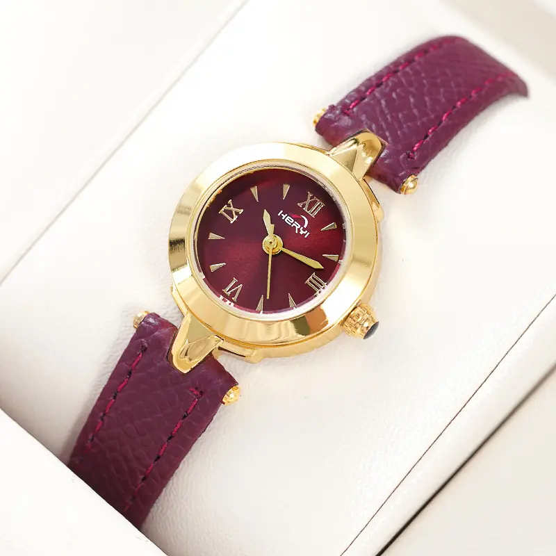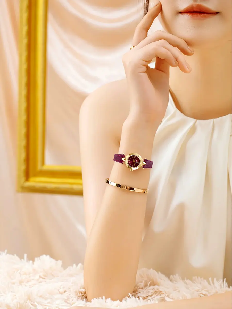 5. 4311-Jam tangan berukuran kecil dan elegan, casing emas dengan dial hitam, tenang namun tetap mewah.