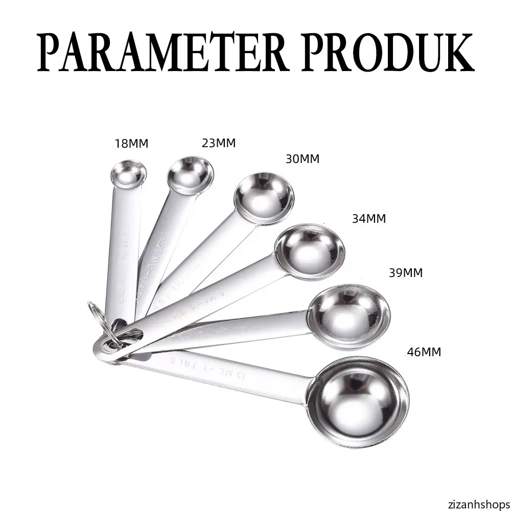 Set Sendok Pengukur 6 Pecahan Alat Dapur: Sendok Kopi, Roti, dan Timbangan Sendok Berbahan Stainless Steel Kualitas Tinggi