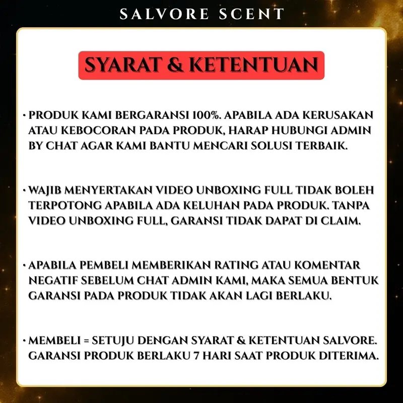 • MEMBELI = SETUJU DENGAN SYARAT & KETENTUAN SALVORE, GARANSI PRODUK BERLAKU 7 HARI SAAT PRODUK DITERIMA.