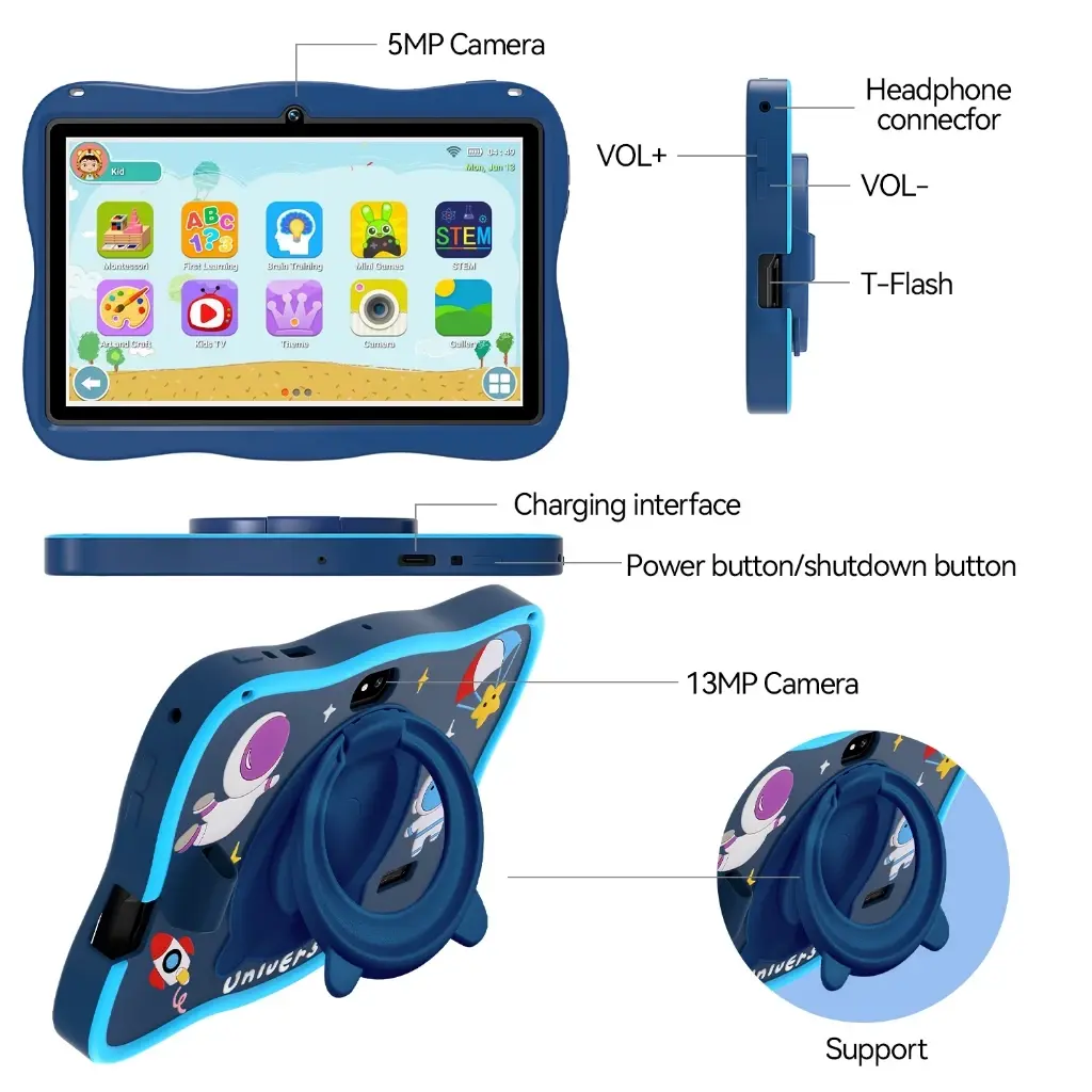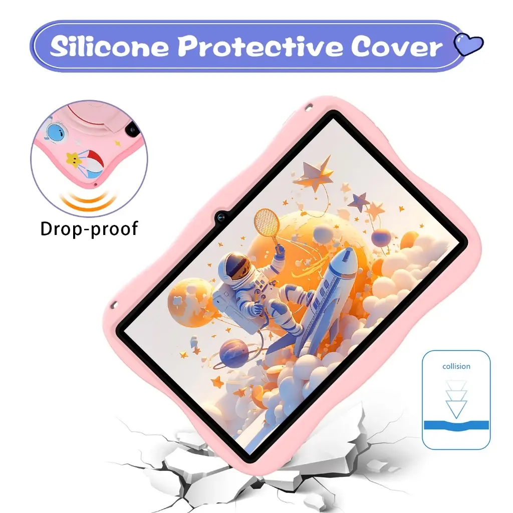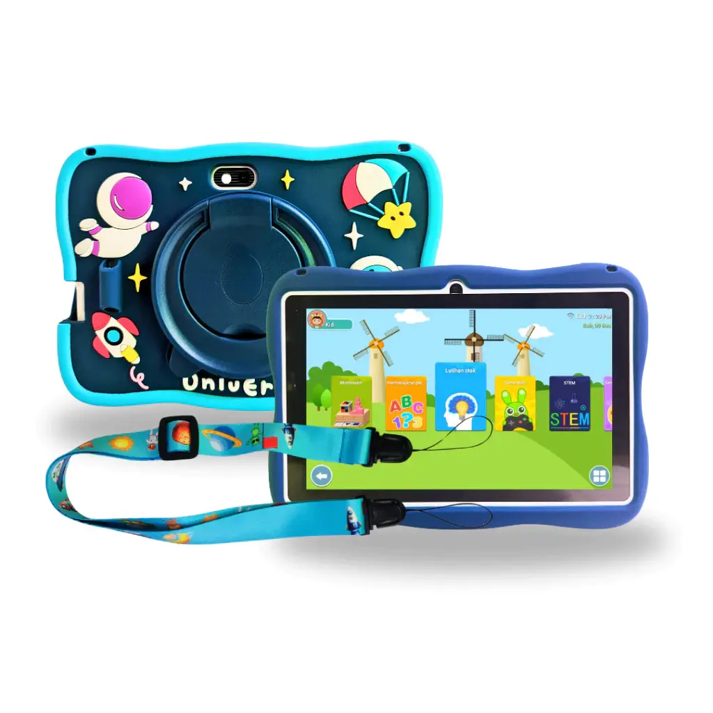 Dilengkapi dengan case silikon yang kokoh dan ramah anak, tablet ini memberikan perlindungan ekstra terhadap guncangan dan benturan yang mungkin terjadi selama penggunaan sehari-hari. Desain astronot yang lucu membuat tablet ini menarik bagi anak-anak. Case-nya terbuat dari foodgrates yang aman. Case silikon juga memberikan pegangan yang nyaman untuk tangan kecil anak-anak, menjadikan pengalaman menggunakan tablet lebih ergonomis dan aman.