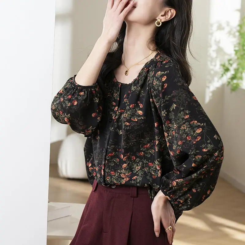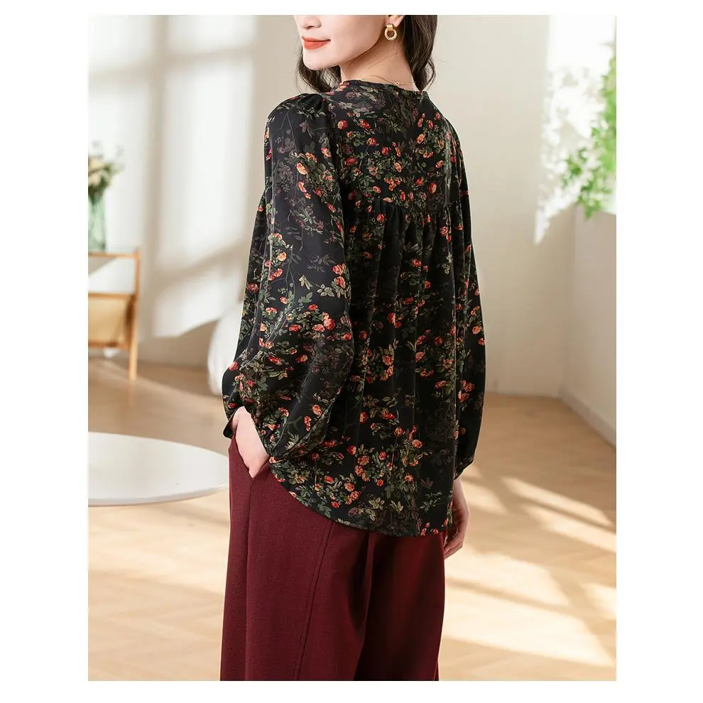 5. Vintage floral chiffon blouse, round neck, top, puff sleeves, loose fit, casual style, available up to 3XL