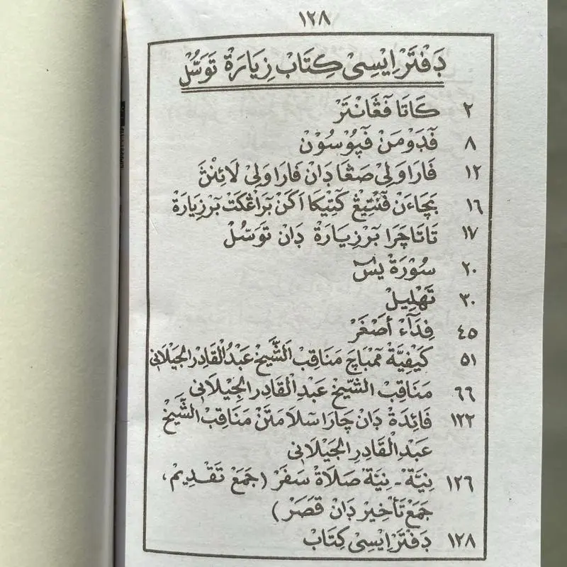 Buku ini adalah bacaan ziarah kubur yang sangat bermanfaat bagi pembaca yang ingin memperdalam pengetahuan tentang ziarah kubur. Buku ini berisi bacaan penting seperti tatacara ziarah dan tawasul, serta manakib tuan seykh Abdul Qodir. Selain itu, buku ini juga berisi surat Yasin dan niat sholat safar (jama qossor).
