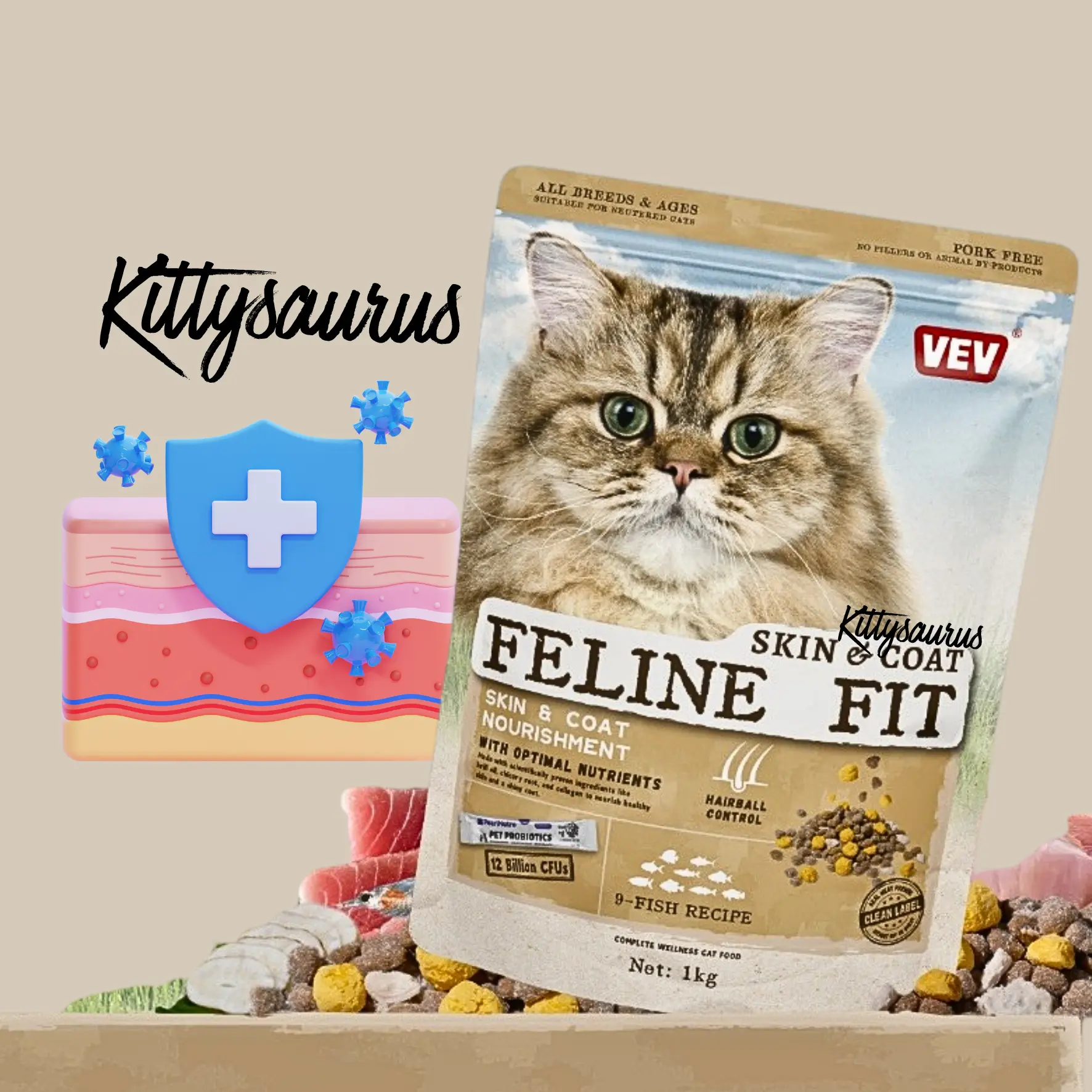 VEV Feline Fit is another brand of dry cat food, known for offering specialized functional diets, particularly in Southeast Asian markets.