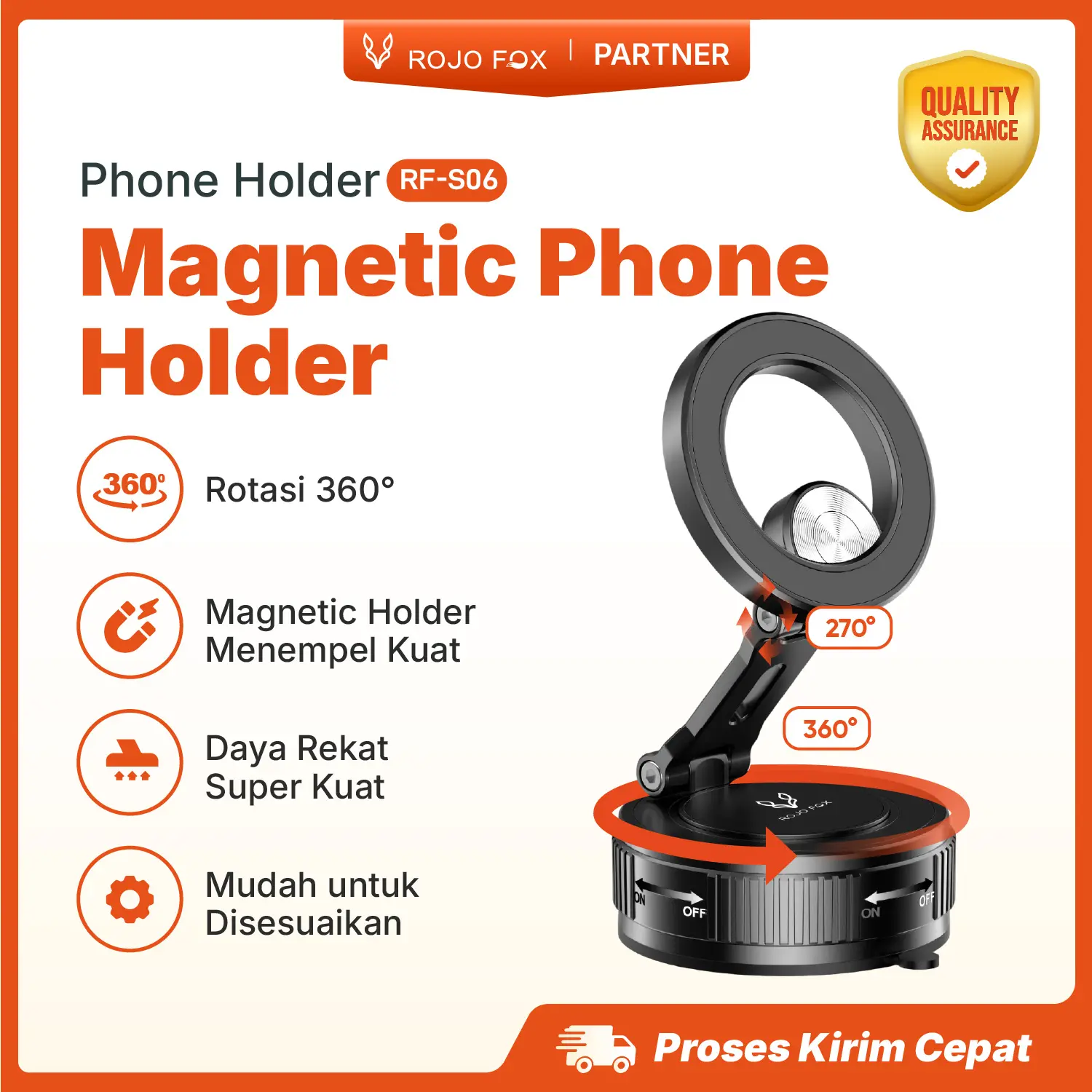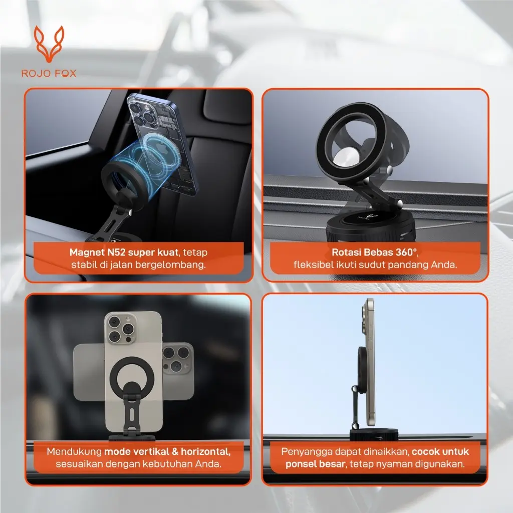 **ROJO FOX RF-S06 -- Logo ROJO FOX, desain elegan, daya hisap kuat, cocok untuk kaca depan/dashboard.
