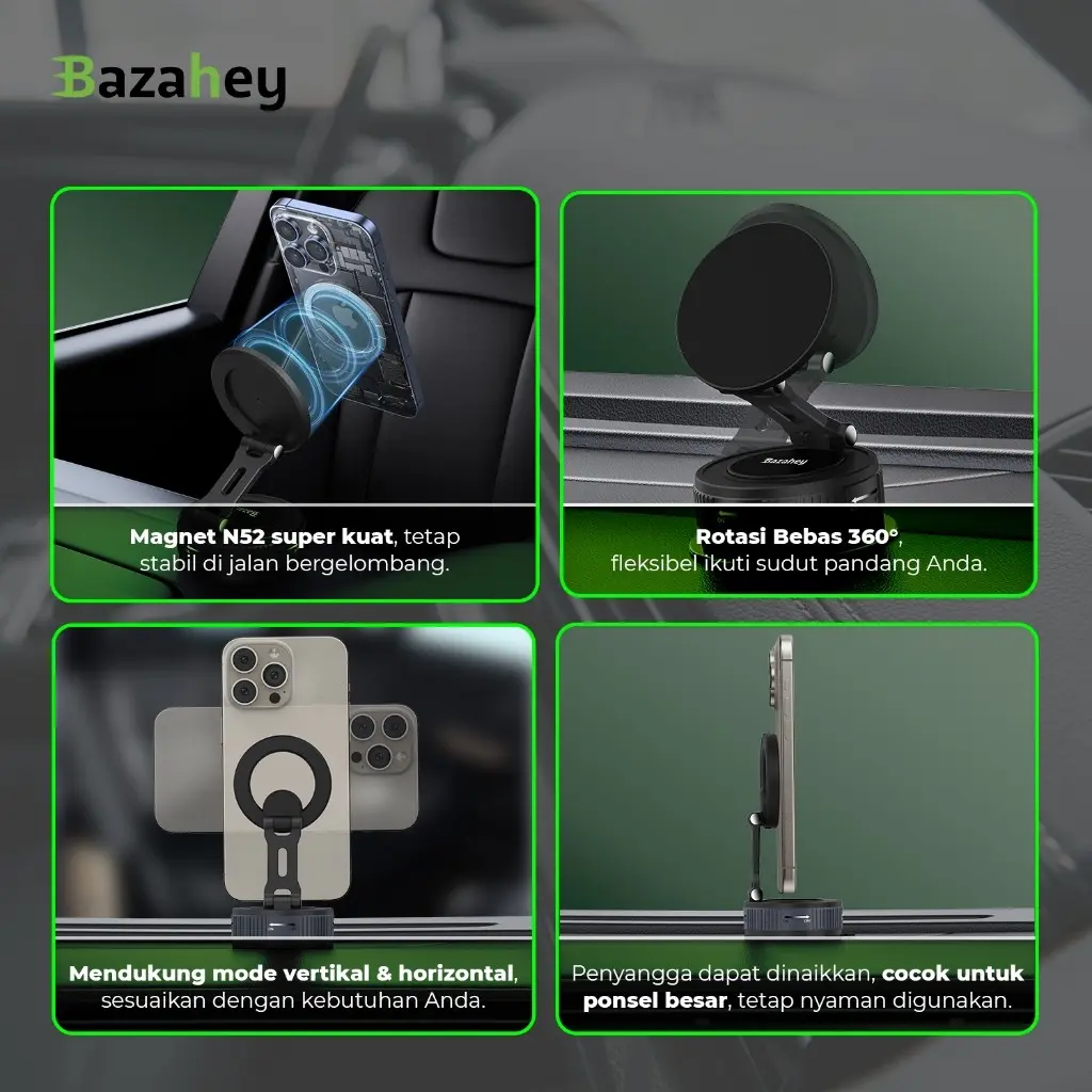 **Kompatibilitas: iPhone seri Magsafe & casing magnetik, serta smartphone dengan ring magnetik